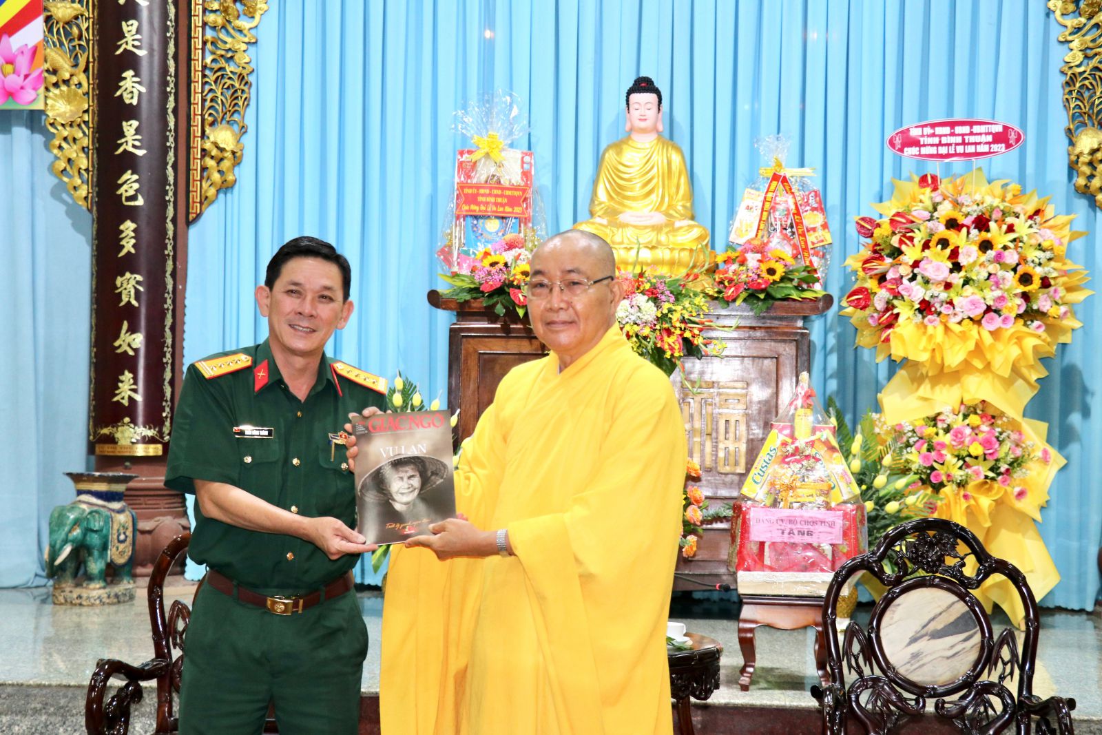 Chiều ngày 29-08-2023, Thường trực Ban Trị sự cũng đã tiếp đón phái đoàn Bộ chỉ huy Quân Sự Tỉnh do Đại tá Trần Đông Thành – Phó Chính uỷ Bộ Chỉ huy Quân Sự Tỉnh làm trưởng đoàn đã đến thăm và chúc mừng Đại lễ Vu Lan.