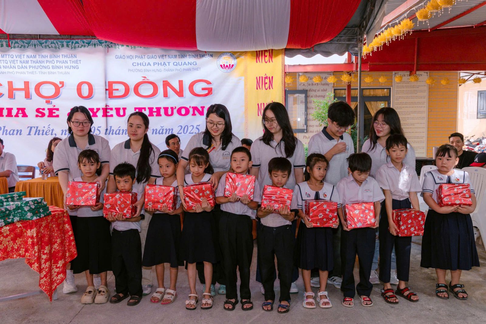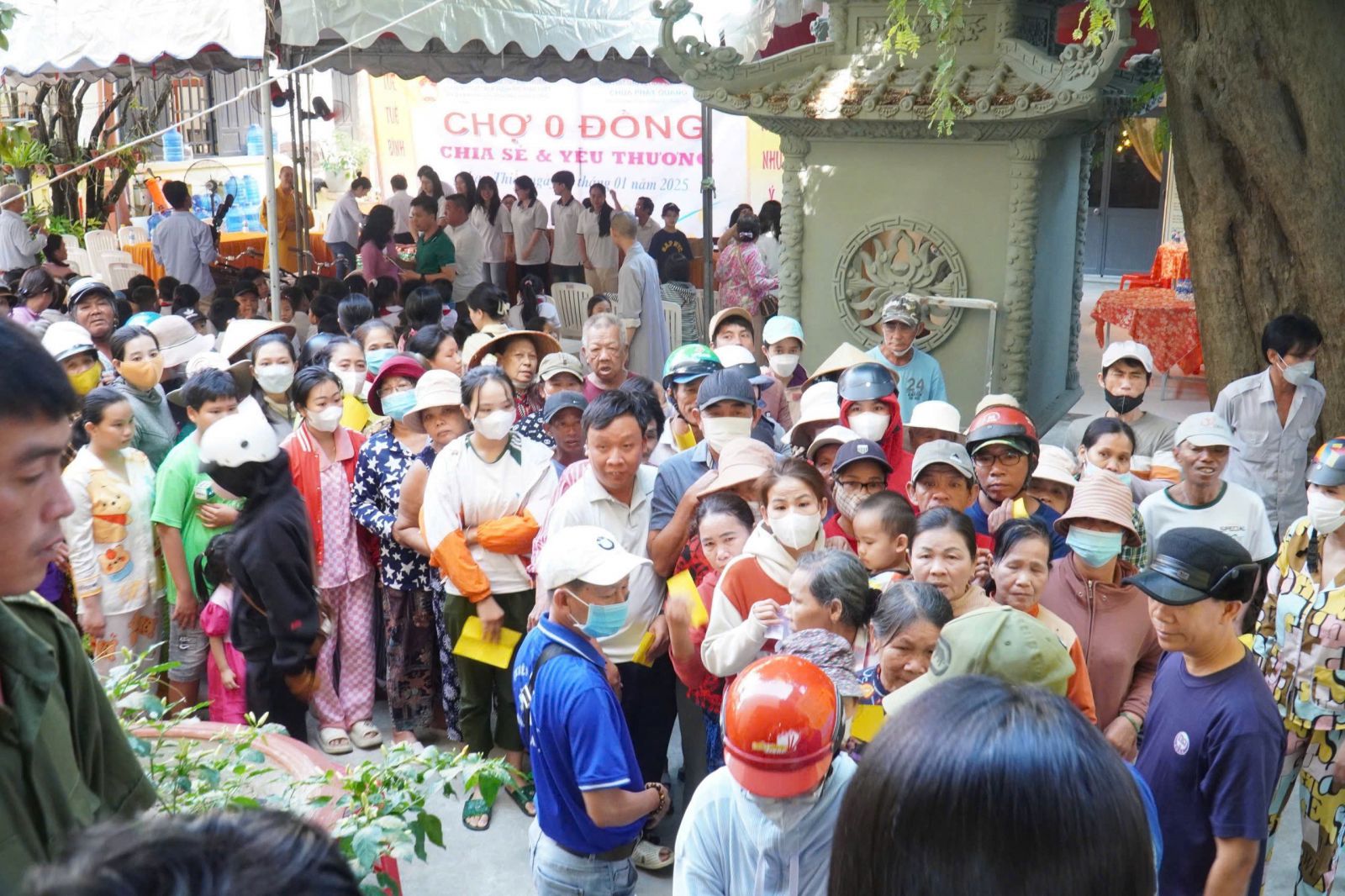 đông đảo bà con khó khăn và các em học sinh tham dự phiên chợ