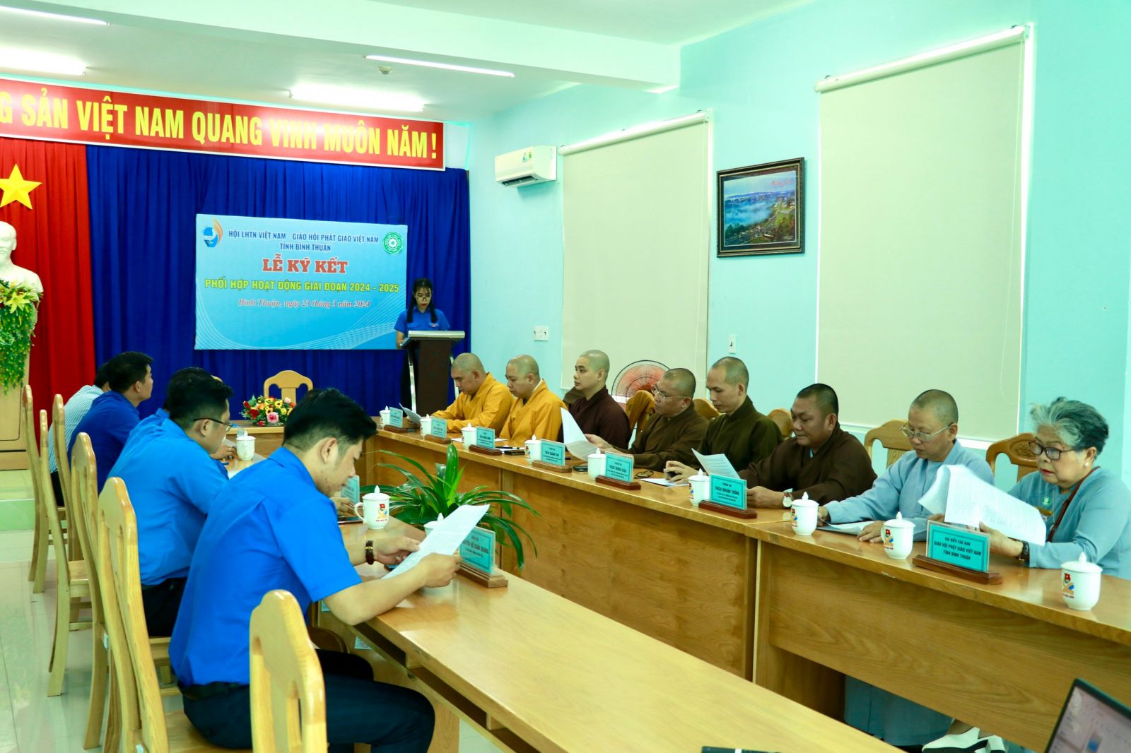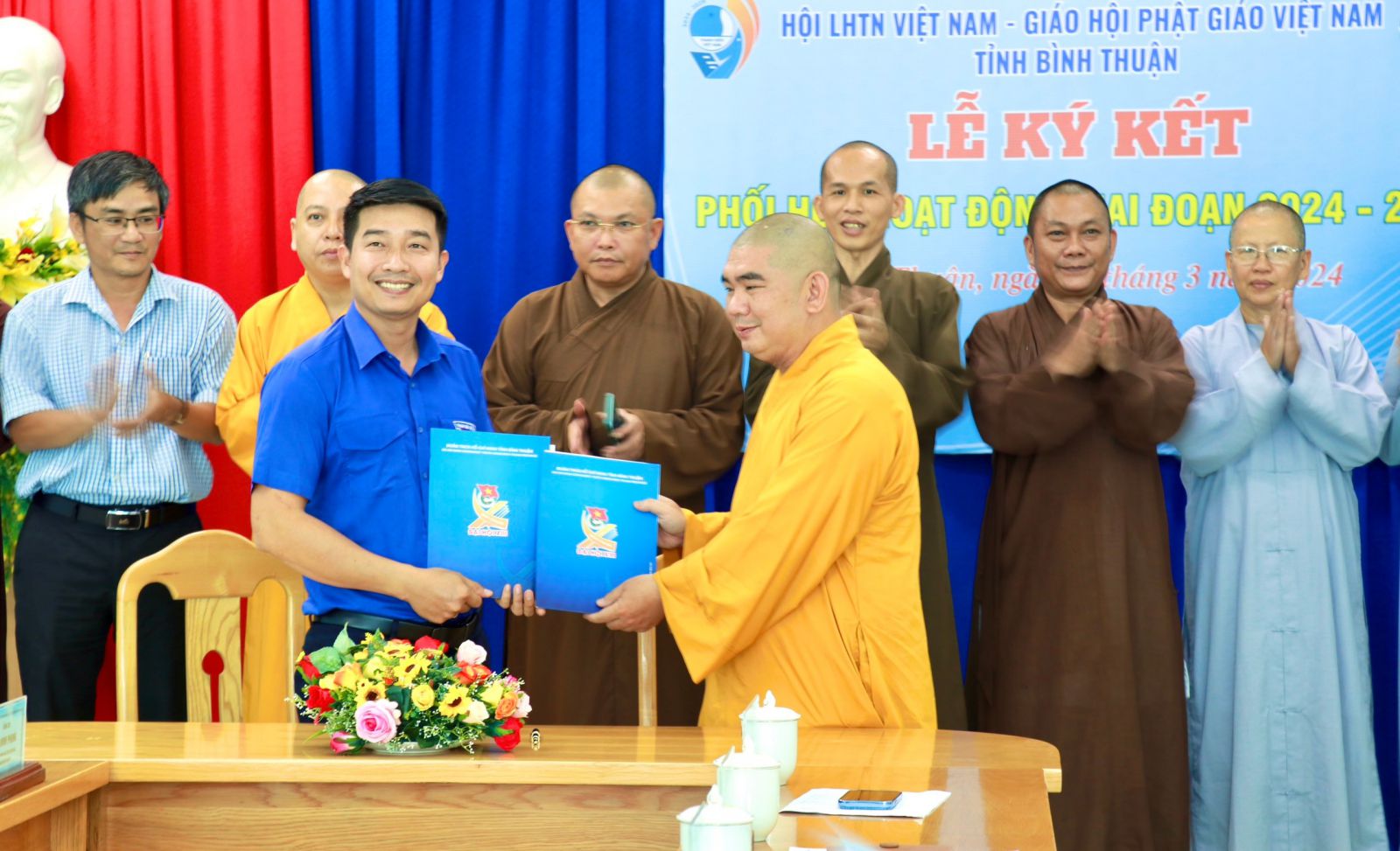 Sáng 23/03/2024, tại trụ sở Tỉnh đoàn Bình Thuận, Ban Trị sự GHPGVN tỉnh Bình Thuận, Hội Liên hiệp Thanh niên Việt Nam tỉnh Bình Thuận đã ký kết chương trình phối hợp các hoạt động trên địa bàn tỉnh giai đoạn 2024-2025.