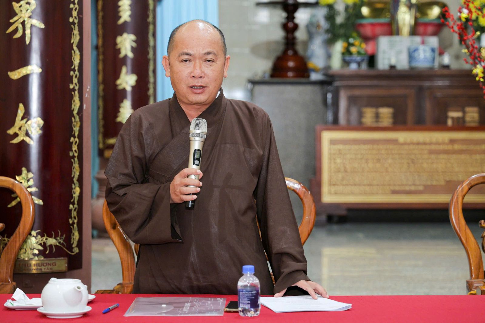 Quang lâm chủ tọa cuộc họp có sự hiện diện của HT. Thích Minh Nhật – Uỷ viên HĐTS, Trưởng Ban Trị sự kiêm Trưởng Ban Tăng sự GHPGVN tỉnh Bình Thuận; TT. Thích Thông Triêm – Uỷ viên HĐTS, Phó Trưởng Ban Thường trực kiêm Trưởng Ban GDPG Tỉnh; TT. Thích Pháp Huệ - Phó Trưởng Ban kiêm Trưởng Ban Hoằng pháp PG tỉnh; TT. Thích Nguyên Sắc, TT. Thích Đạt Ma Khế Định – đồng Phó Trưởng Ban Trị sự PG Tỉnh; ĐĐ. Thích Nguyên Nguyệt – Phó Trưởng Ban kiêm Chánh Thư ký BTS PG tỉnh; ĐĐ. Thích Quảng Pháp – Phó Thư ký kiêm Chánh Văn phòng BTS PG tỉnh; Chư Tôn đức Ban Thường Trực BTS Tỉnh, Chư Tôn đức Ban Trị sự PG các Huyện/Thị/Thành, Đại diện các tiểu ban Tổ chức đồng tham dự.