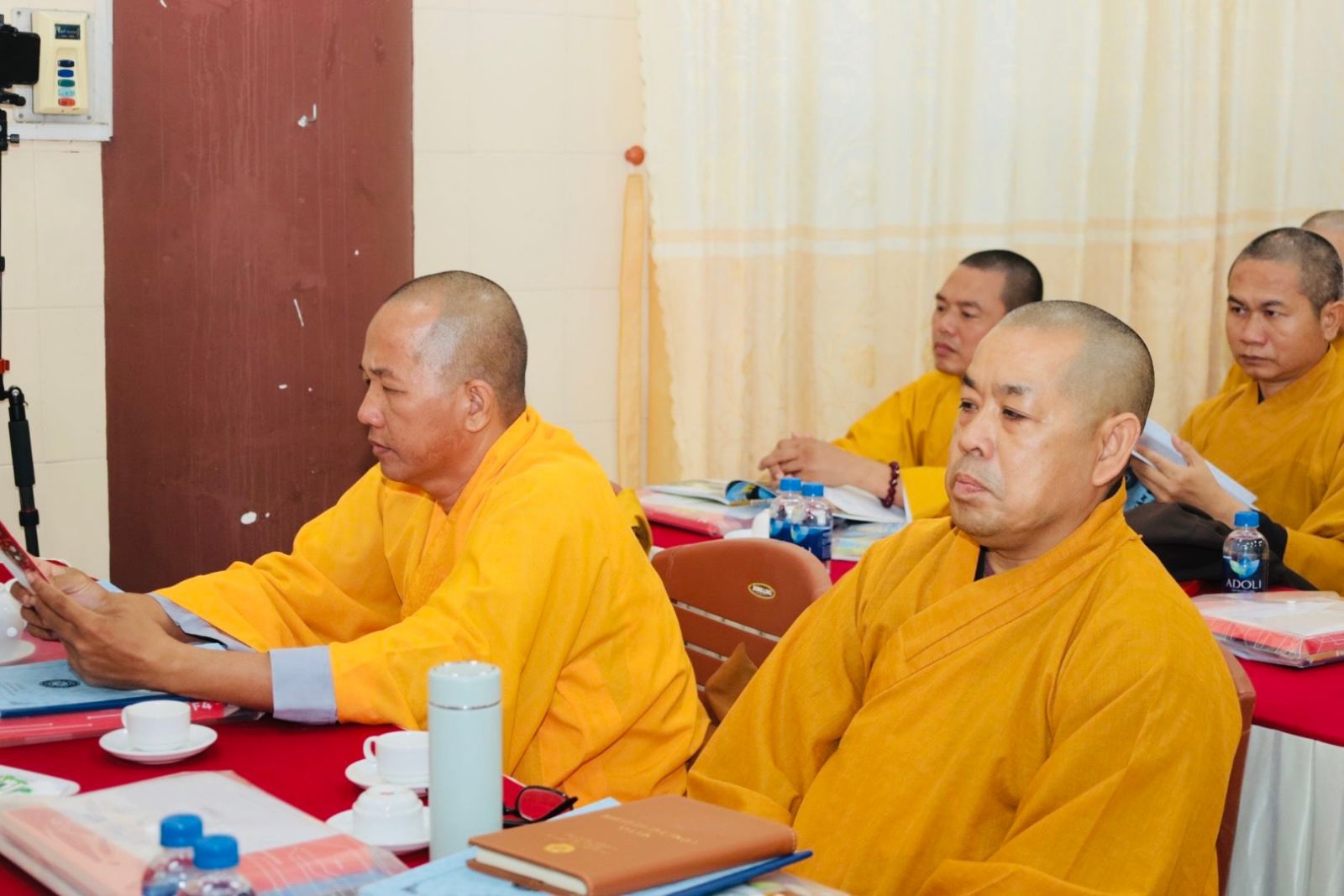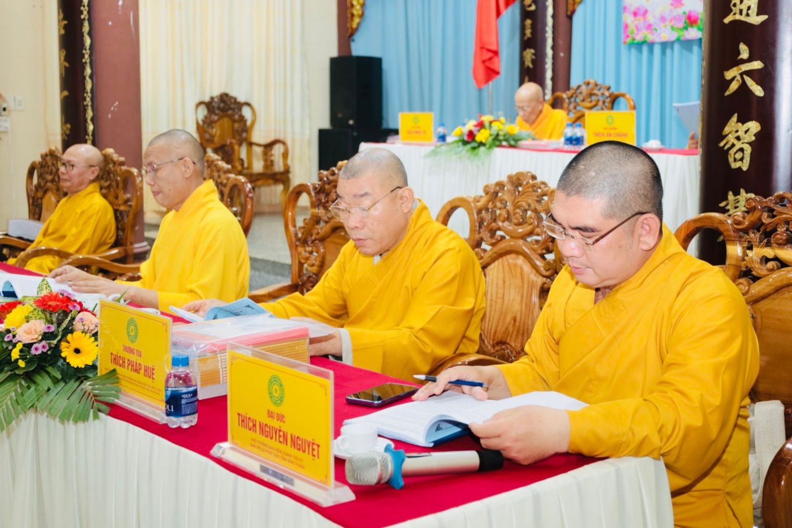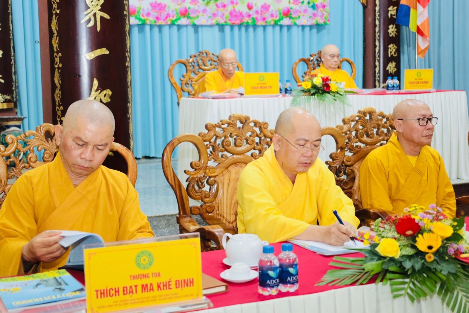 Báo cáo hoạt động Phật sự 2023, Đại đức Thích Quảng Pháp  – Phó Thư ký, Chánh Văn phòng Ban Trị sự tỉnh đã tóm tắt các Phật sự đã đạt được trong năm qua tiêu biểu như: Phổ biến triển khai các văn bản của Trung Ương Giáo hội, kiện toàn nhân sự các Ban chuyên môn, tổ chức hội nghị sinh hoạt hành chính Giáo hội và nghiệp vụ trụ trì năm 2023 trong mùa An cư Kiết hạ với nhiều nội dung thu hút đông đảo Tăng Ni, Phật tử tham dự; Lễ ký kết an toàn giao thông, ký kết hợp tác lan tỏa 4 Đề án Văn hóa Phật giáo giữa Ban Văn hóa Trung ương Giáo hội và BTS GHPGVN tỉnh. Hạ thuỷ thành công 7 đóa hoa sen trên sông Cà Ty, tổ chức diễu hành xe hoa nhân mùa Phật đản PL. 2567. Về công tác an sinh xã hội, trong năm qua  Ban Trị sự đã xây dựng nhiều nhà tình thương, hỗ trợ người khó khăn, nấu cơm cho các bệnh viện, và nhiều công tác thiện nguyện với tổng số tiền hơn hàng chục tỷ đồng.