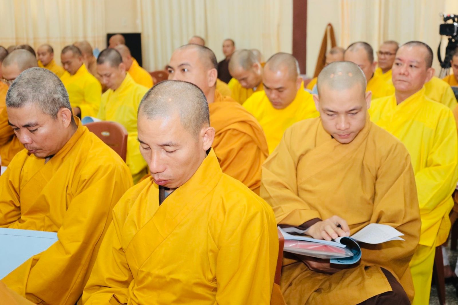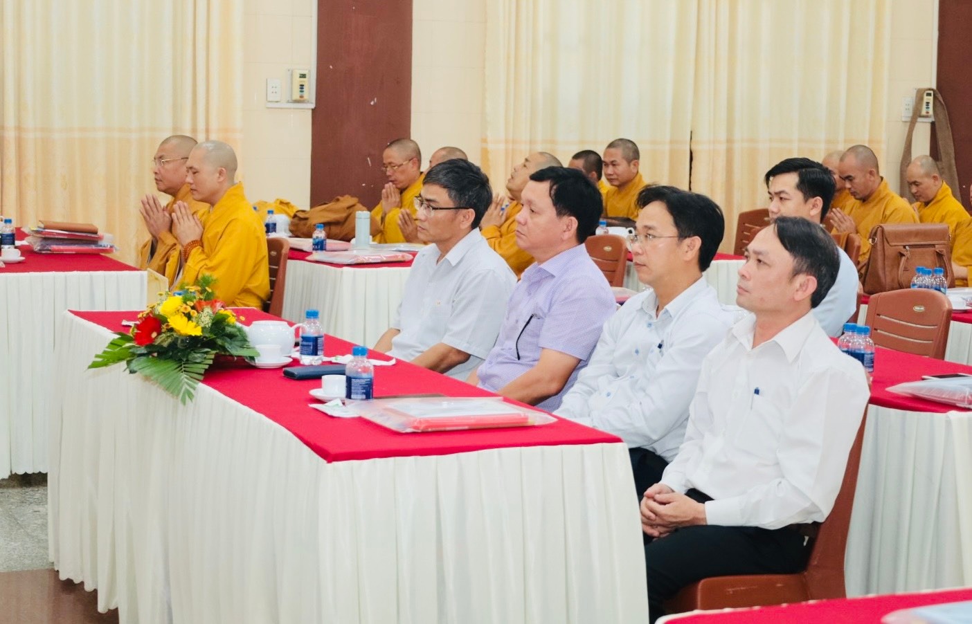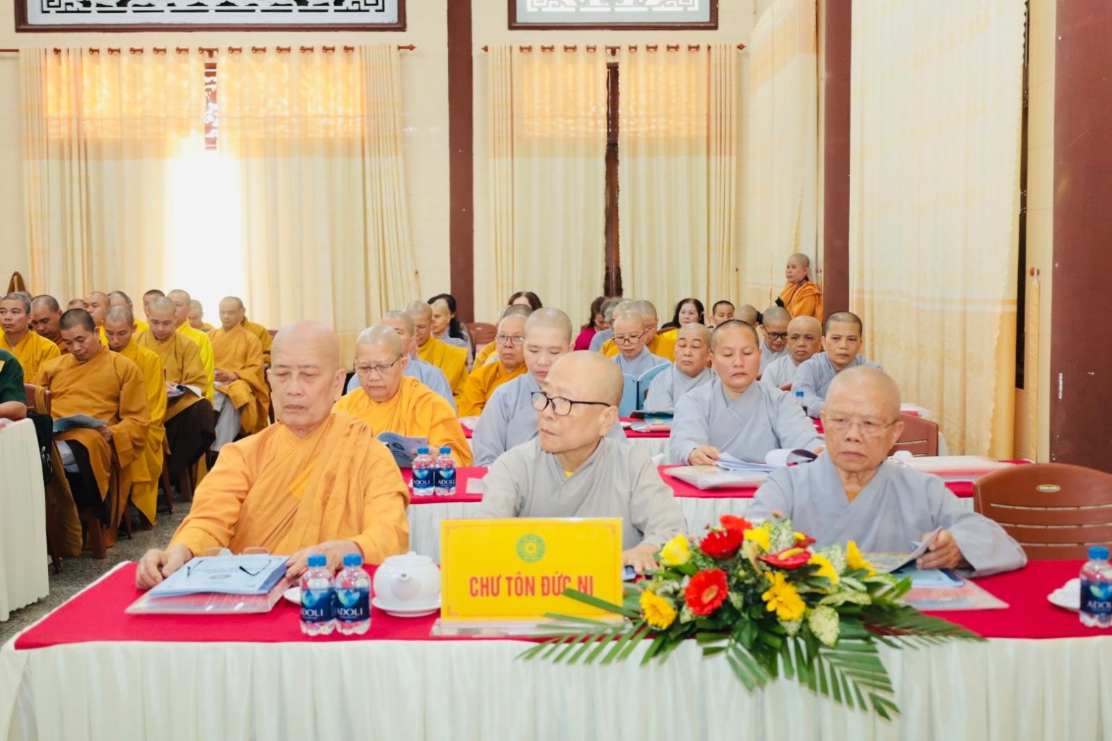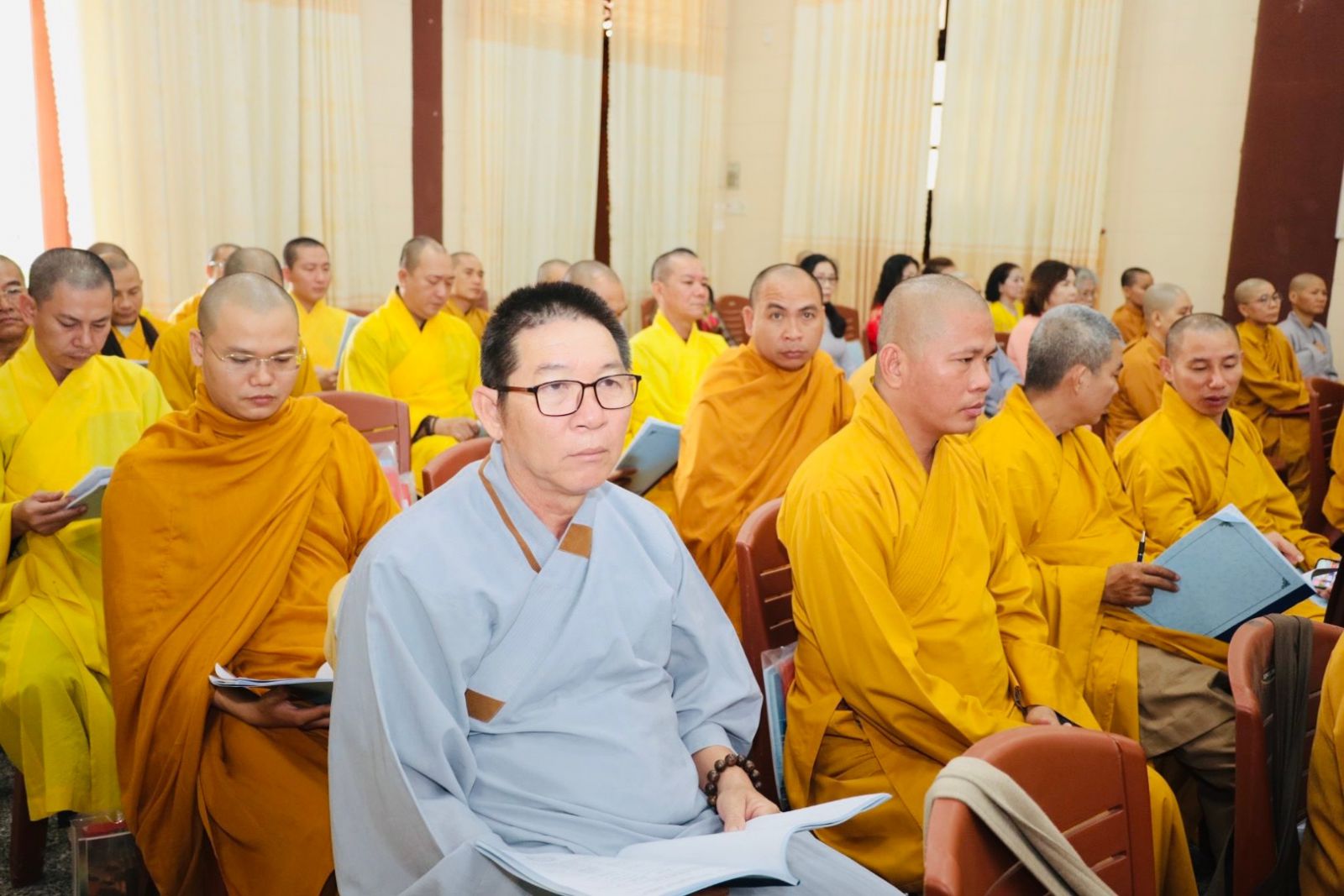 Báo cáo hoạt động Phật sự 2023, Đại đức Thích Quảng Pháp  – Phó Thư ký, Chánh Văn phòng Ban Trị sự tỉnh đã tóm tắt các Phật sự đã đạt được trong năm qua tiêu biểu như: Phổ biến triển khai các văn bản của Trung Ương Giáo hội, kiện toàn nhân sự các Ban chuyên môn, tổ chức hội nghị sinh hoạt hành chính Giáo hội và nghiệp vụ trụ trì năm 2023 trong mùa An cư Kiết hạ với nhiều nội dung thu hút đông đảo Tăng Ni, Phật tử tham dự; Lễ ký kết an toàn giao thông, ký kết hợp tác lan tỏa 4 Đề án Văn hóa Phật giáo giữa Ban Văn hóa Trung ương Giáo hội và BTS GHPGVN tỉnh. Hạ thuỷ thành công 7 đóa hoa sen trên sông Cà Ty, tổ chức diễu hành xe hoa nhân mùa Phật đản PL. 2567. Về công tác an sinh xã hội, trong năm qua  Ban Trị sự đã xây dựng nhiều nhà tình thương, hỗ trợ người khó khăn, nấu cơm cho các bệnh viện, và nhiều công tác thiện nguyện với tổng số tiền hơn hàng chục tỷ đồng.