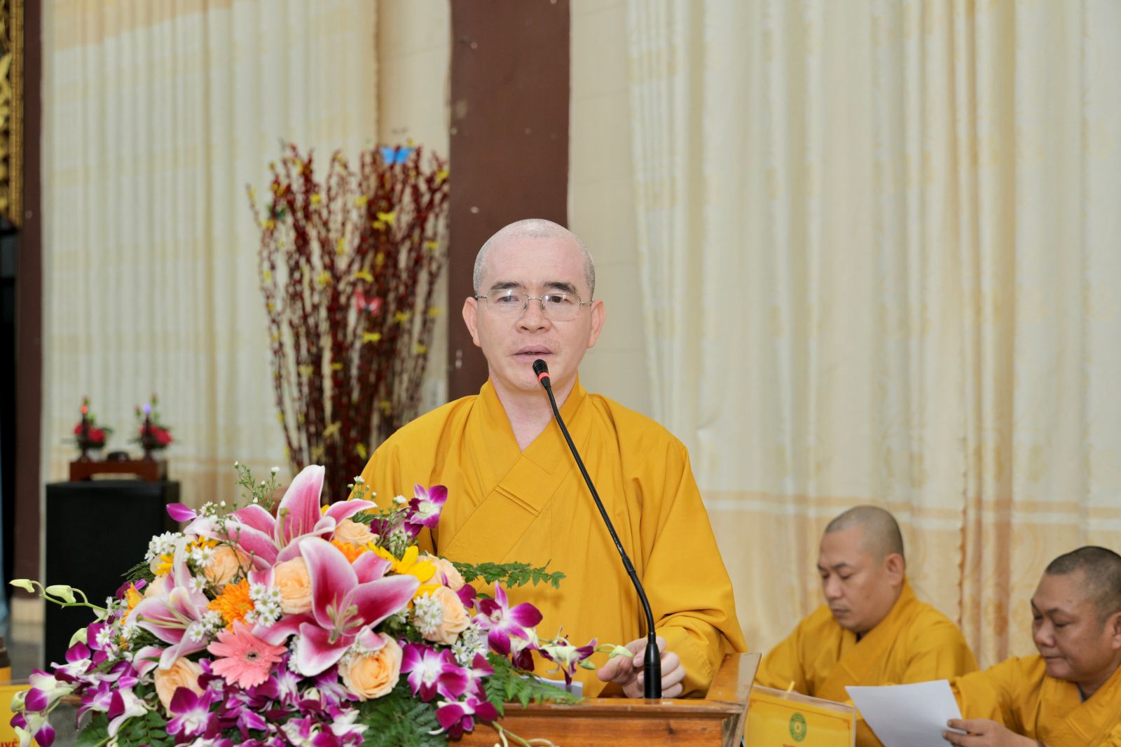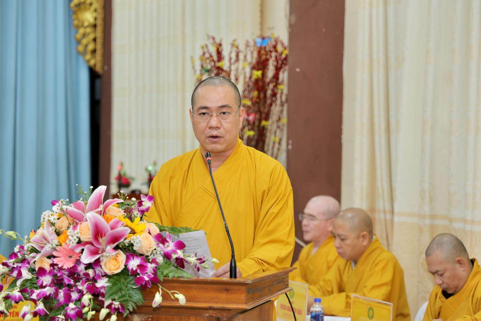 ĐĐ. Thích Quảng Pháp trình bày báo cáo tổng kết Phật sự năm 2024