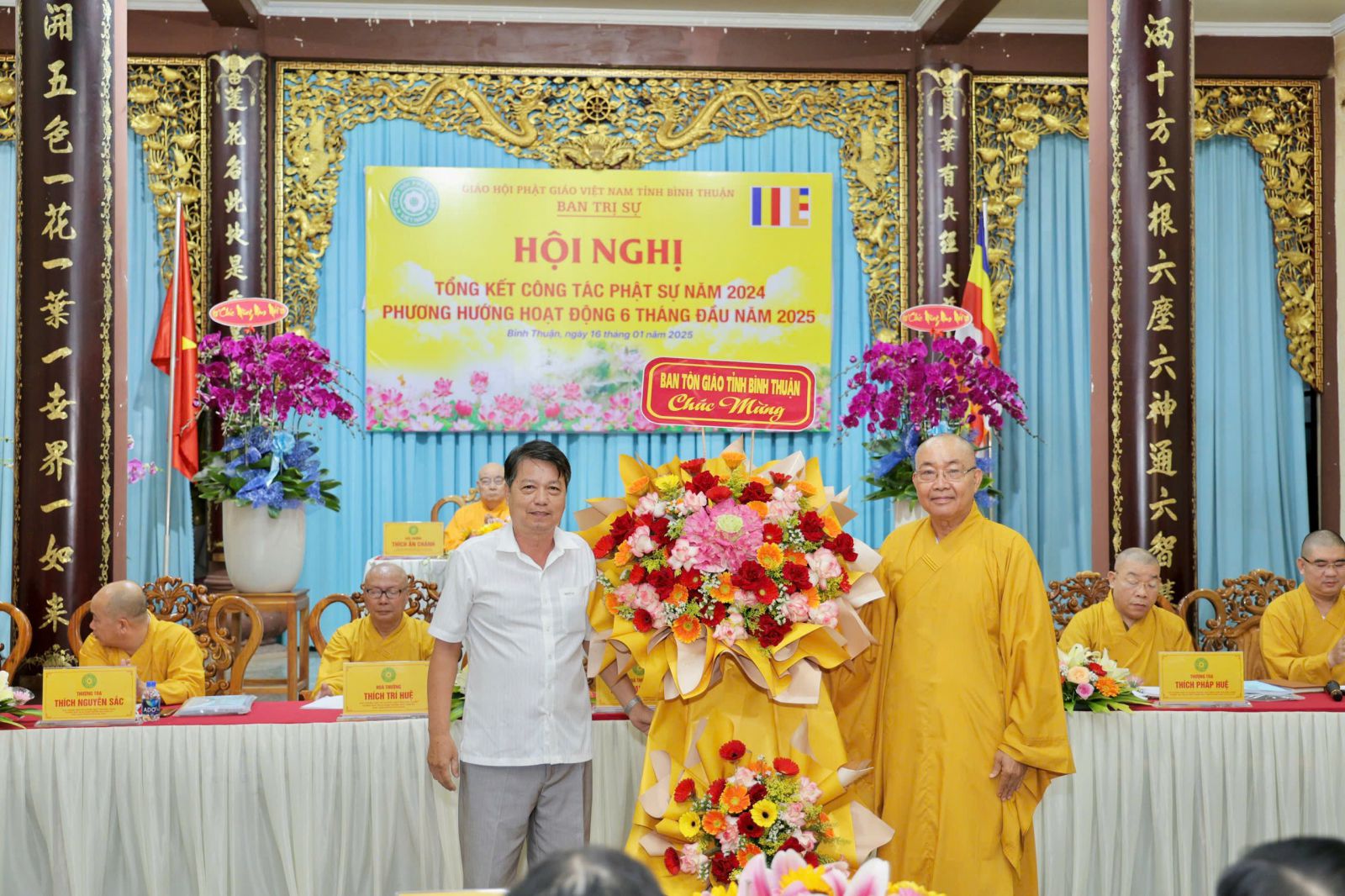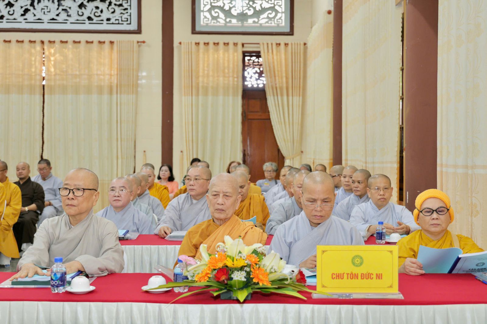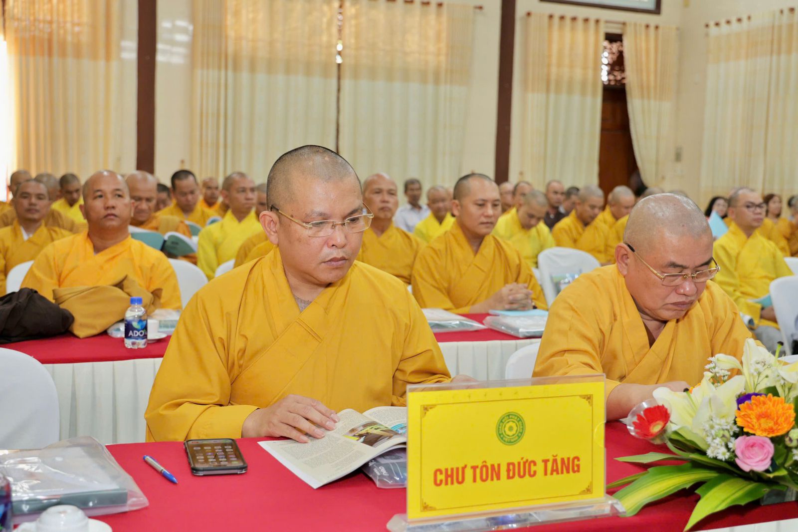 Chủ tọa Hội nghị có Hòa thượng Thích Minh Nhật – Ủy viên HĐTS, Trưởng BTS kiêm Trưởng Ban Tăng sự GHPGVN tỉnh Bình Thuận; Thượng tọa Thích Thông Triêm – Ủy viên HĐTS, Phó trưởng Ban Thường trực BTS kiêm Trưởng Ban GDPG GHPGVN tỉnh; Hòa thượng Thích Trí Huệ - Phó Trưởng Ban Trị sự GHPGVN tỉnh; Thượng tọa Thích Pháp Huệ - Phó Trưởng BTS kiêm Trưởng Ban Hoằng pháp GHPGVN tỉnh; Thượng tọa Thích Đạt Ma Khế Định, Thượng tọa Thích Nguyên Sắc – Phó Trưởng Ban Trị sự Phật giáo tỉnh; ĐĐ. Thích Nguyên Nguyệt – Phó Trưởng Ban kiêm Chánh Thư ký BTS GHPGVN tỉnh; ĐĐ. Thích Quảng Pháp phó Thư ký, Chánh Văn phòng BTS GHPGVN tỉnh; Chư Tôn đức Thường trực Ban Trị sự Phật giáo tỉnh. Đại diện Phân Ban Ni giới có Ni trưởng Thích Nữ Như Hải – UVTT BTS, Trưởng Phân Ban Ni giới Tỉnh; cùng chư Tôn đức Tăng, Ni BTS GHPGVN tỉnh; chư Tôn đức Thường trực BTS Phật giáo 10 huyện, thị, thành phố các ban ngành chuyên môn trong tỉnh đồng tham dự.