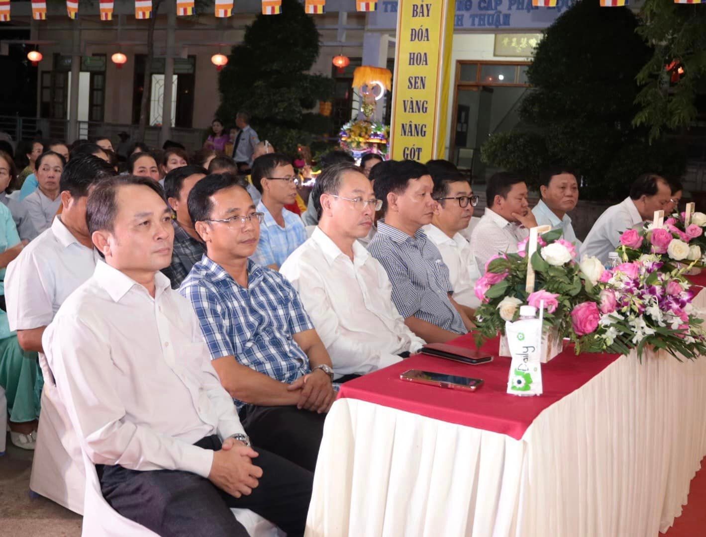 Về phía đại diện Chính quyền có ông Nguyễn Văn Trí - Phó Chủ tịch Thường trực UBMTTQVN tỉnh Bình Thuận; Ông Nguyễn Thanh Minh – Trưởng Ban Tôn giáo tỉnh Bình Thuận; Ông Đặng Quốc Phát - Phó phòng An ninh nội địa Công an tỉnh Bình Thuận; Ông Nguyễn Văn Luân - Phó Bí thư Thường trực, Chủ tịch HĐND thành phố; Ông Nguyễn Nam Long - Phó Chủ tịch UBND thành phố Phan Thiết; Ông Trần Ngọc Sơn - Phó Chủ tịch UBMTTQVN thành phố Phan Thiết; Ông Nguyễn Ngọc Sáu - Phó C.A thành phố Phan Thiết; Bà Trịnh Thị Kim Thanh - Phó phòng Nội vụ thành phố, cùng đại diện các Sở, Ban, Ngành tỉnh Bình Thuận, thành phố Phan Thiết, phường Phú Thuỷ và hơn 500 Phật tử tham dự.