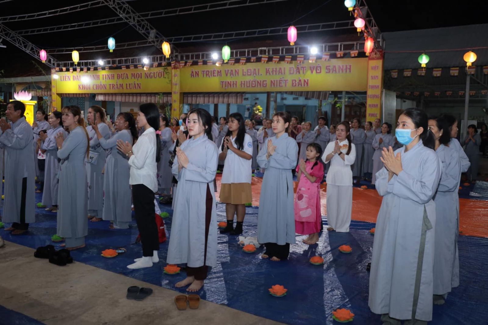 Thượng tọa Thích Nguyên Sắc đã điều hành phần dâng hoa đăng cúng dường lên đức Phật để hồi hướng về “Vô sư trí” trong tương lai khi “ngồi đạo tràng, thành Chánh giá.
