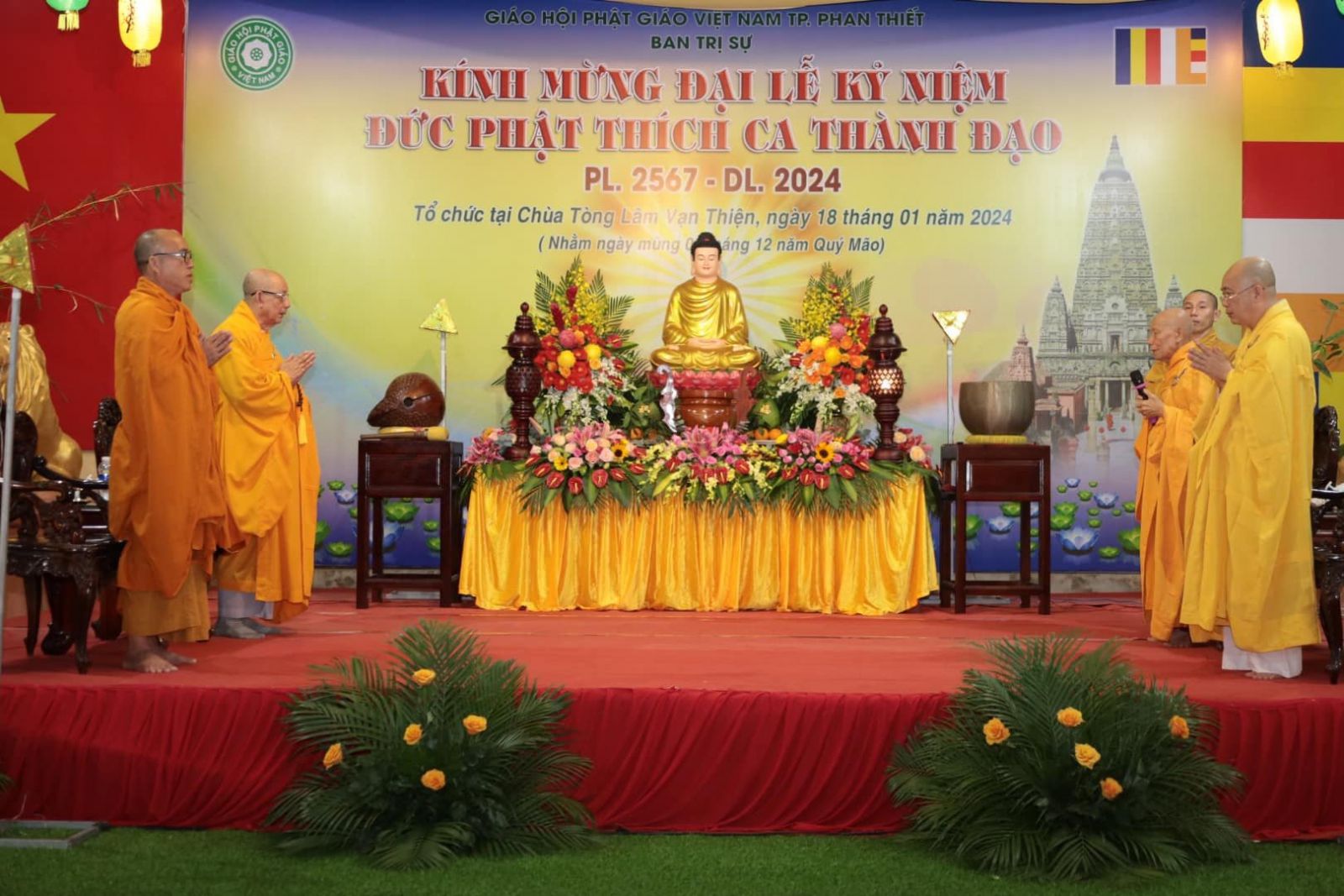 Quang lâm chứng minh và tham dự có Trưởng lão Hoà thượng Thích Minh Trí - Thành viên HĐCM, Giáo phẩm Chứng minh Ban Trị sự PG tỉnh Bình Thuận, Viện chủ Tòng lâm Vạn Thiện; Hoà thượng Thích Tích Quang - Giáo phẩm Chứng minh Ban Trị sự PG Phan Thiết; Thượng tọa Thích Nguyên Sắc - Phó Ban Trị sự PG tỉnh, Trưởng Ban Trị sự PG Phan Thiết; chư vị Phó ban cùng chư Tôn đức Tăng Ni trụ trì và đông đảo Phật tử các tự viện trên thành phố.
