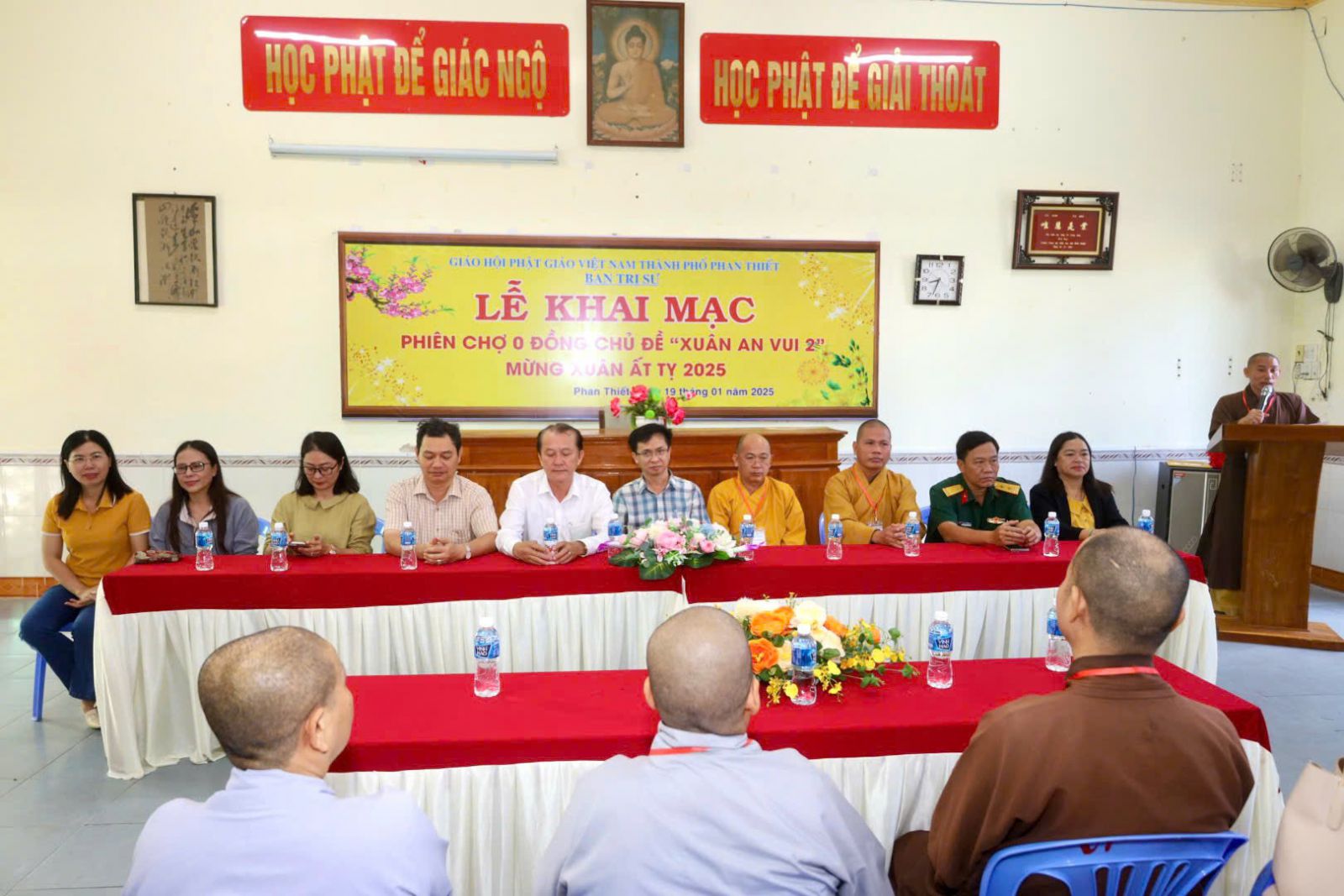 Đến tham dự có Thượng tọa Thích Nguyên Sắc, Phó Ban Trị sự PG tỉnh, Trưởng Ban Trị sự PG thành phố, Trưởng Ban tổ chức; Đại đức Thích Nguyên Tấn, Uỷ viên BTS PG tỉnh, Phó Ban Thường trực BTS thành phố; Đại đức Thích Đồng Duyên, UV BTS PG tỉnh, Phó Trưởng Ban Trị sự PG thành phố; Đại đức Thích Quảng Đại, UV BTS PG tỉnh, Chánh Thư ký BTS cùng chư Tôn đức Tăng, Ni trụ trì các Tự viện tại thành phố Phan Thiết.