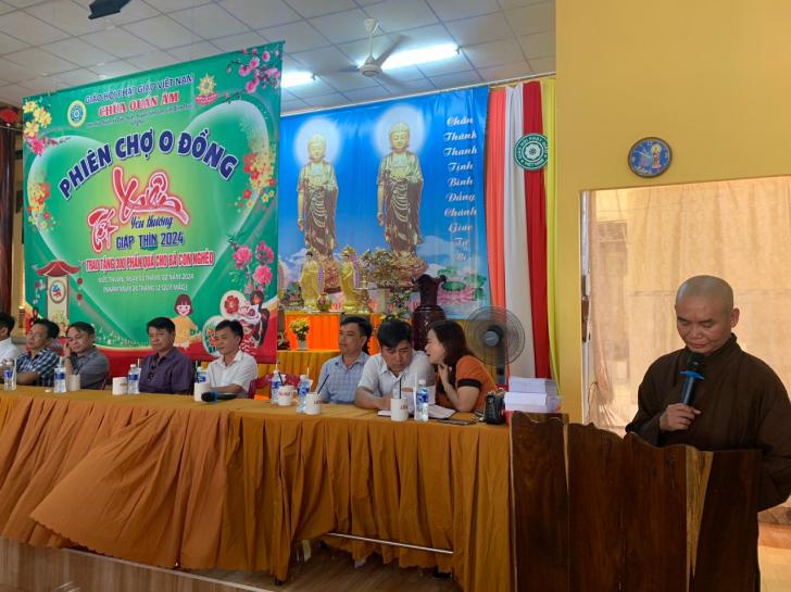 Đại diện quý vị Lãnh đạo Chính quyền, Ông Nguyễn Nam Long đã phát biểu cảm ơn sự đồng hành của Ban Trị sự, Tăng, Ni và Phật tử tại thành phố trong các hoạt động xã hội, đặc biệt là phiên chợ “0” đồng hôm nay diễn ra trong bối cảnh kinh tế khó khăn như hiện nay là một việc làm rất tốt đẹp, nêu lên tinh thần “phụng đạo yêu nước” của Phật giáo thành phố.