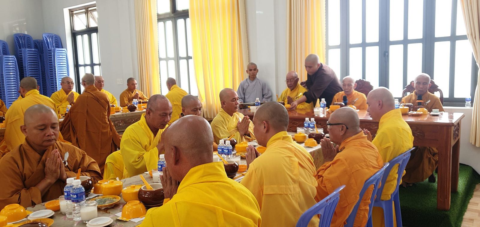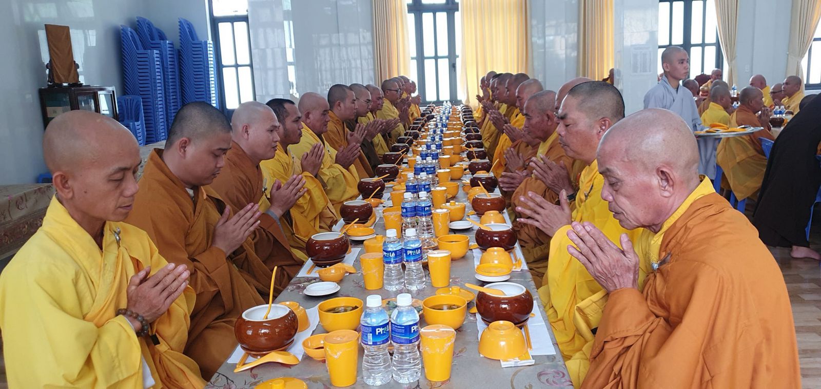 Sáng nay, 17-6 (29-4-Quý Mão), tại Trường hạ Tòng Lâm Vạn Thiện, chư tôn đức Tăng hành giả an cư kiết hạ đã bố-tát tụng giới và dự quá đường tập thể.