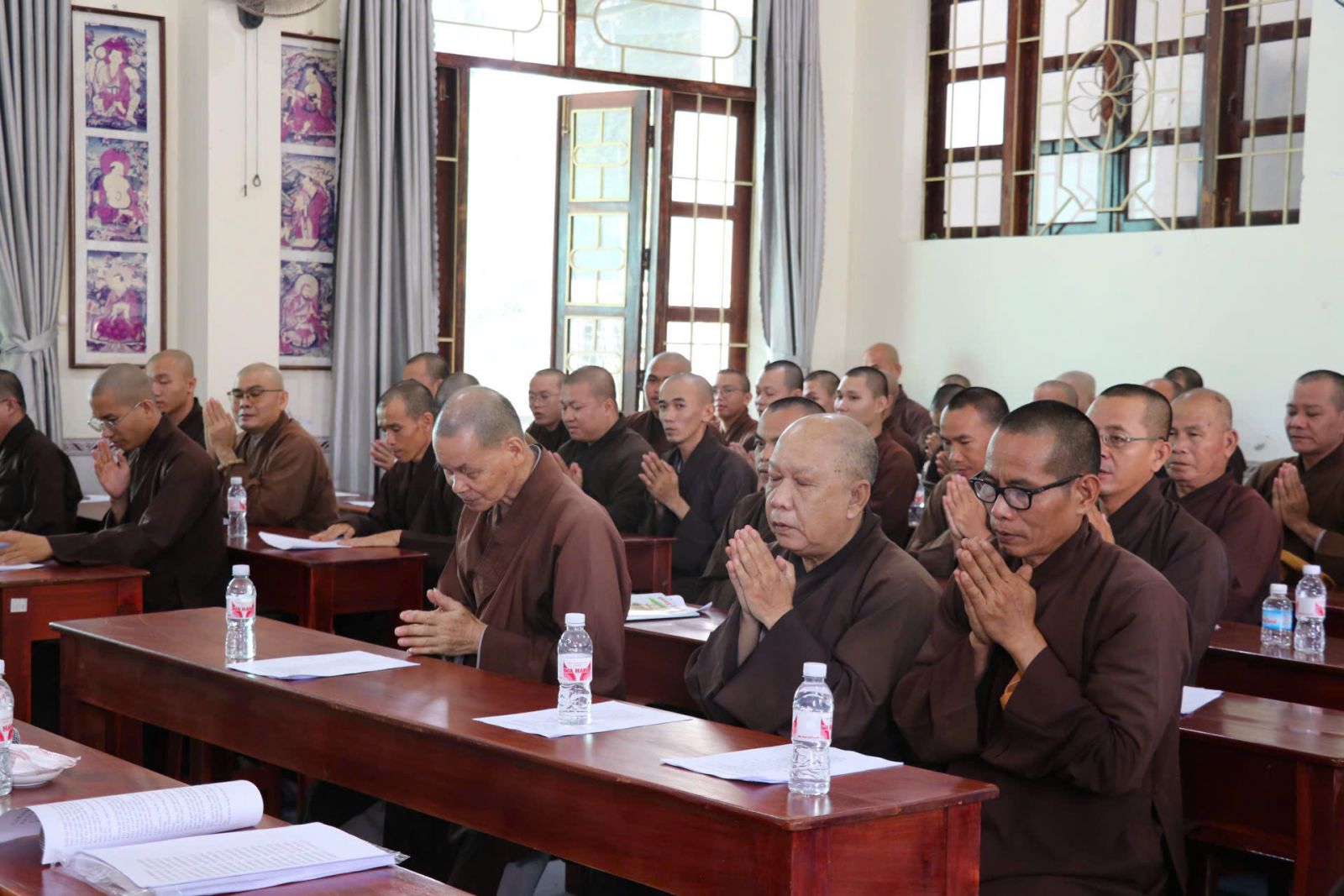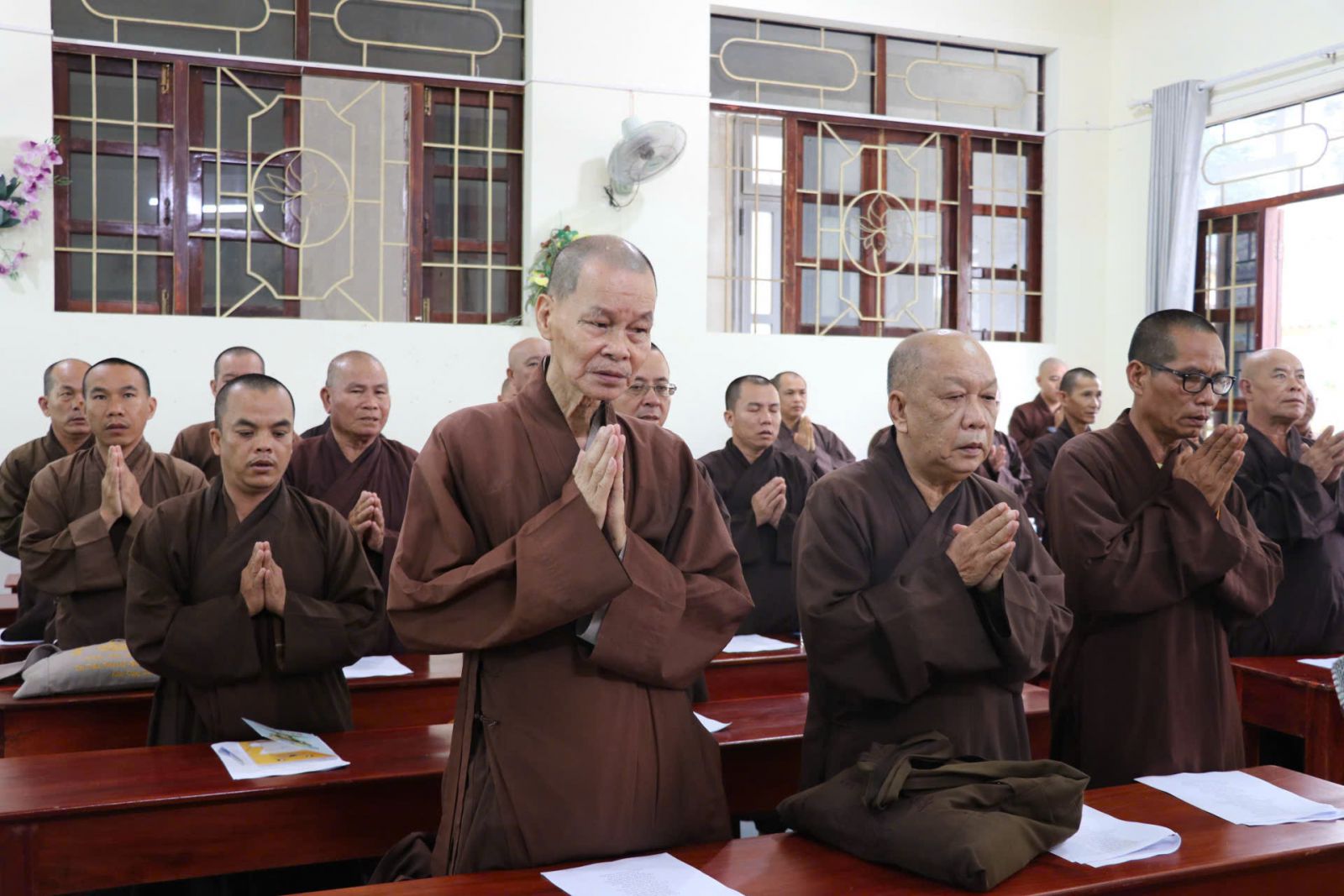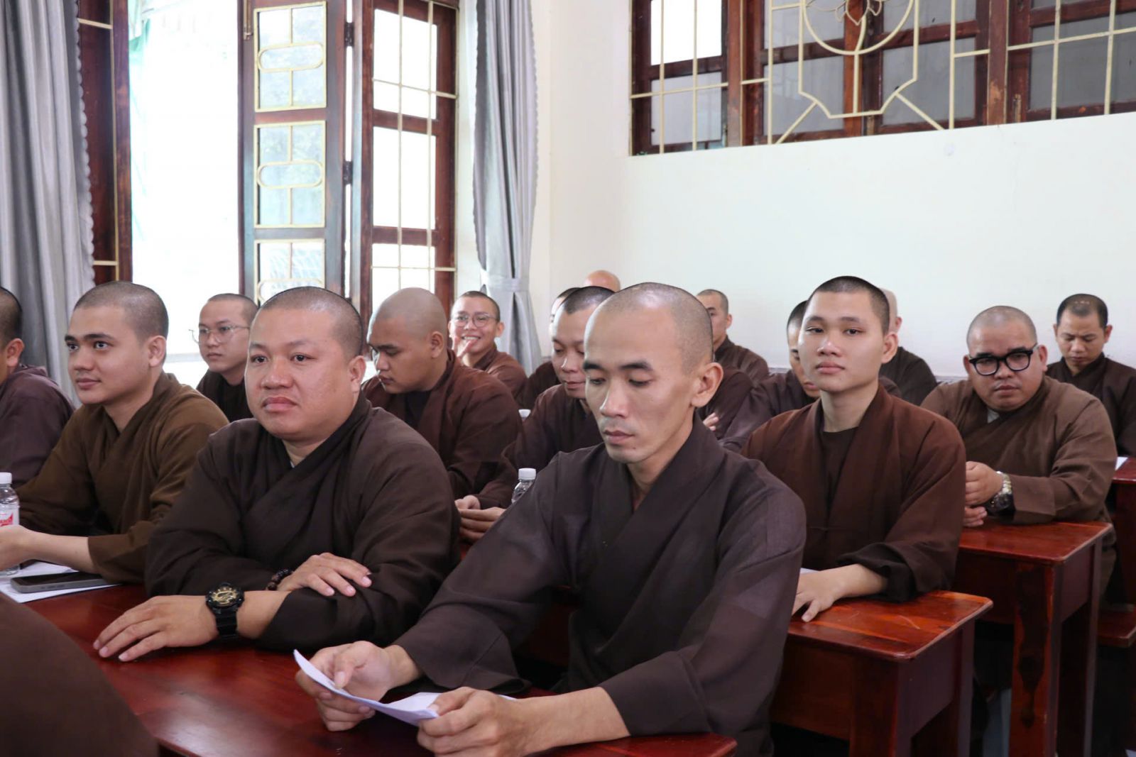 Với tinh thần hòa hợp và thanh tịnh, đại chúng đã nhất tâm lắng nghe những chia sẻ quý báu từ chư Tôn đức hiện diện. Sau buổi sinh hoạt đầy ý nghĩa, chư Tăng đã vân tập về trai đường, trang nghiêm thực hiện nghi thức Quá đường tập thể trong tinh thần thanh tịnh, chánh niệm.