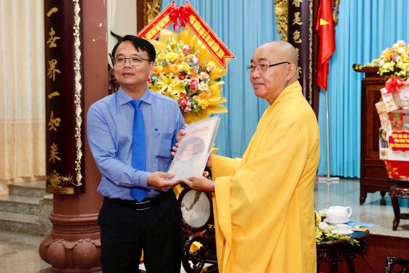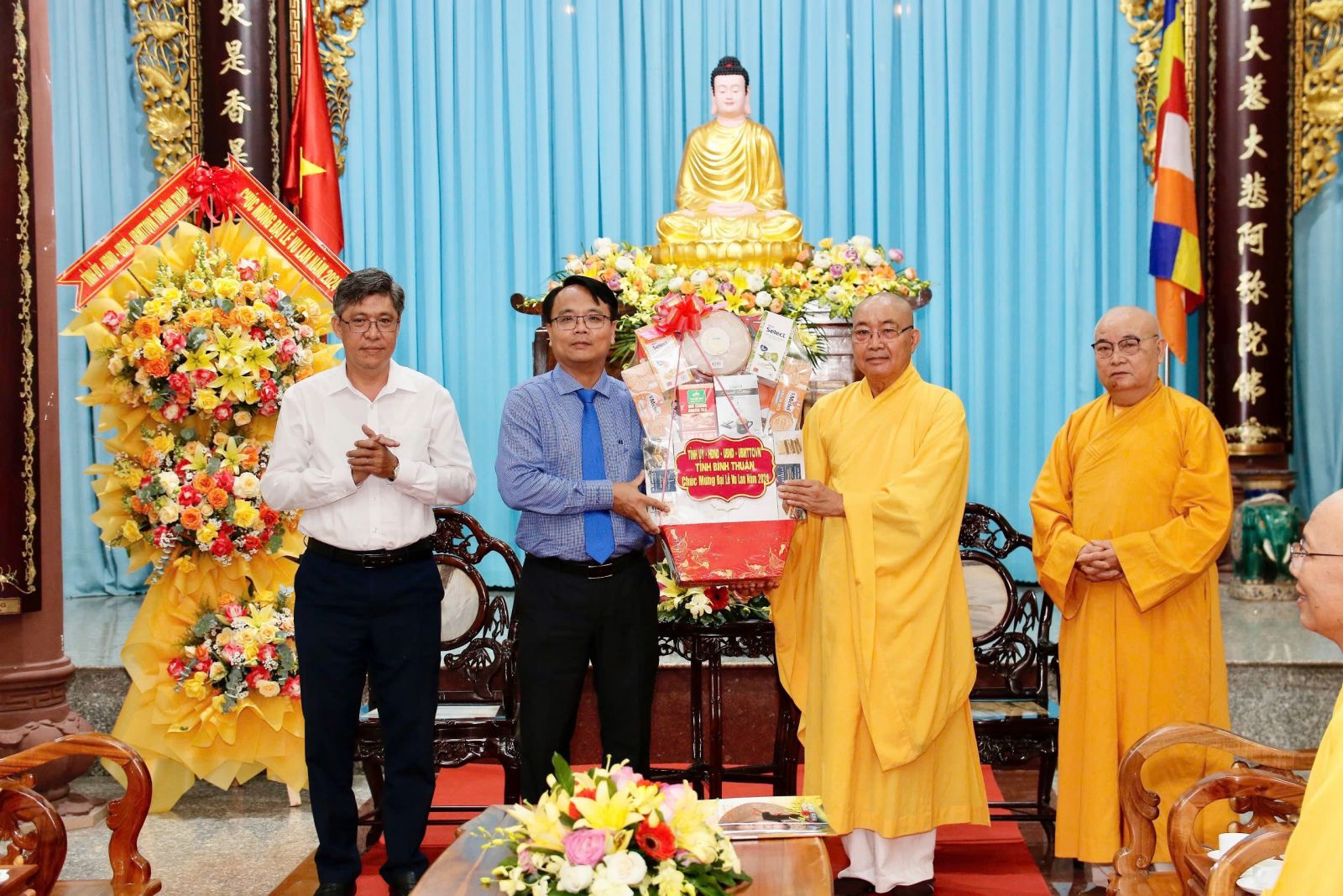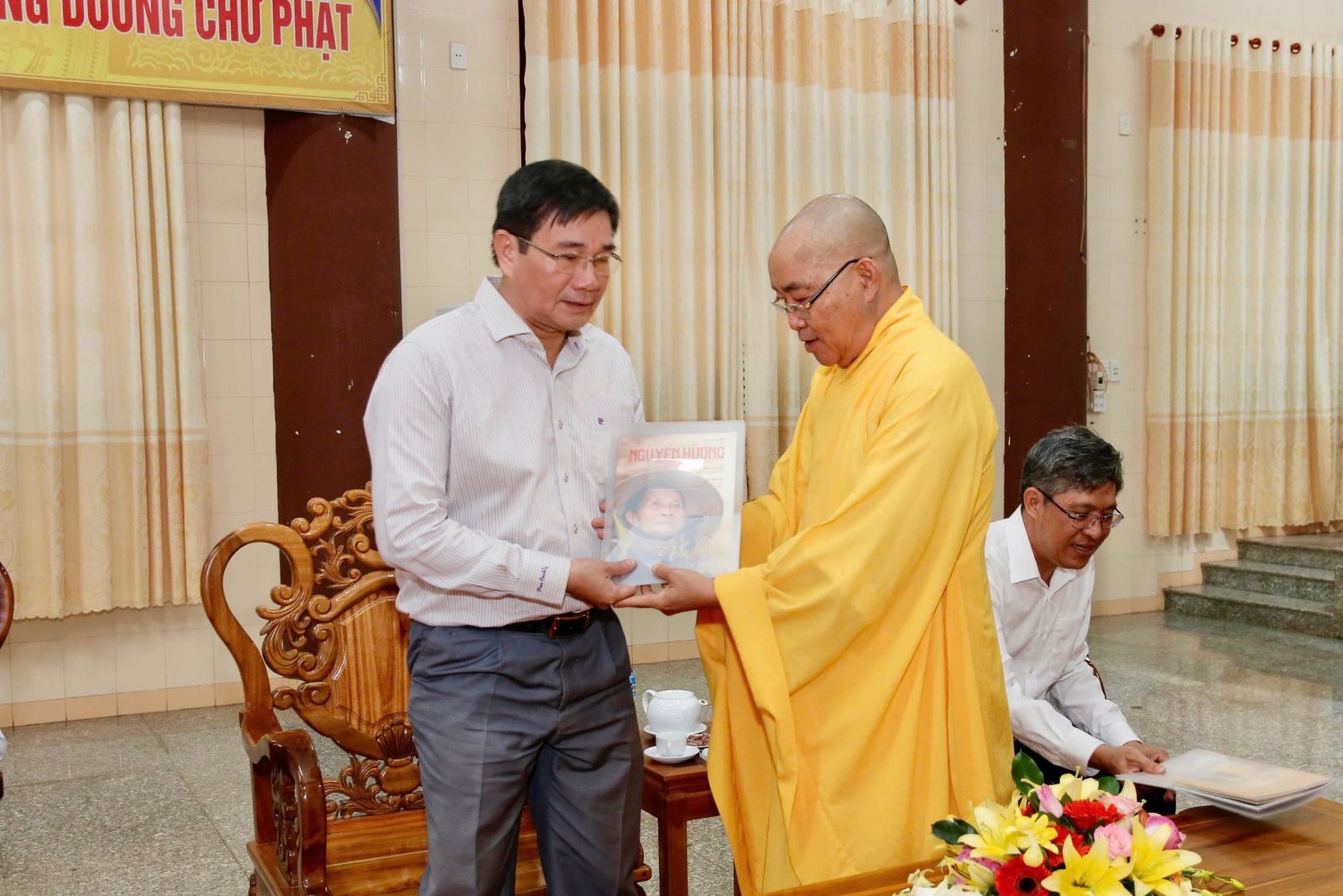 Đón tiếp phái đoàn có Trưởng lão HT. Thích Ấn Chánh – Thành viên HĐCM, Chứng minh BTS GHPGVN tỉnh Bình Thuận; Hòa thượng Thích Minh Nhật - Uỷ viên HĐTS, Trưởng Ban Trị sự kiêm Trưởng Ban Tăng sự GHPGVN Tỉnh; TT. Thích Thông Triêm – Uỷ viên HĐTS, Phó Trưởng Ban Thường trực kiêm Trưởng Ban GDPG GHPGVN tỉnh; TT. Thích Pháp Huệ - Phó Trưởng Ban Trị sự kiêm Trưởng Ban Hoằng pháp Phật giáo Tỉnh; TT. Thích Nguyên Sắc – Phó Trưởng Ban Trị sự GHPGVN tỉnh; Đại đức Thích Nguyên Nguyệt – Phó Trưởng Ban kiêm Chánh Thư ký BTS GHPGVN Tỉnh; Thượng toạ Thích Nhuận Thông - Uỷ viên Thư ký, Trưởng Ban Văn hoá GHPGVN Tỉnh; Đại đức Thích Quảng Pháp – Phó Thư ký kiêm Chánh Văn phòng BTS GHPGVN Tỉnh.