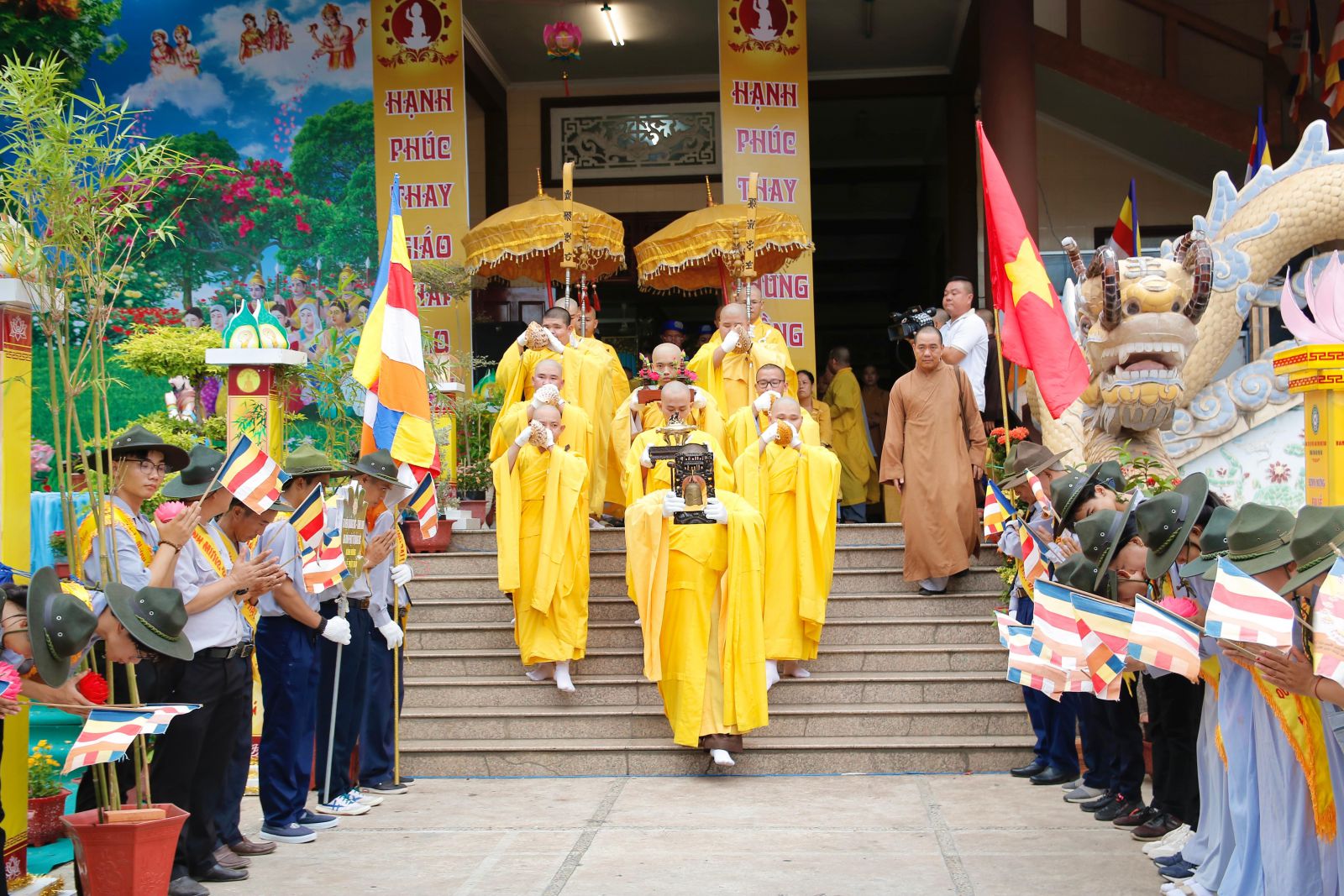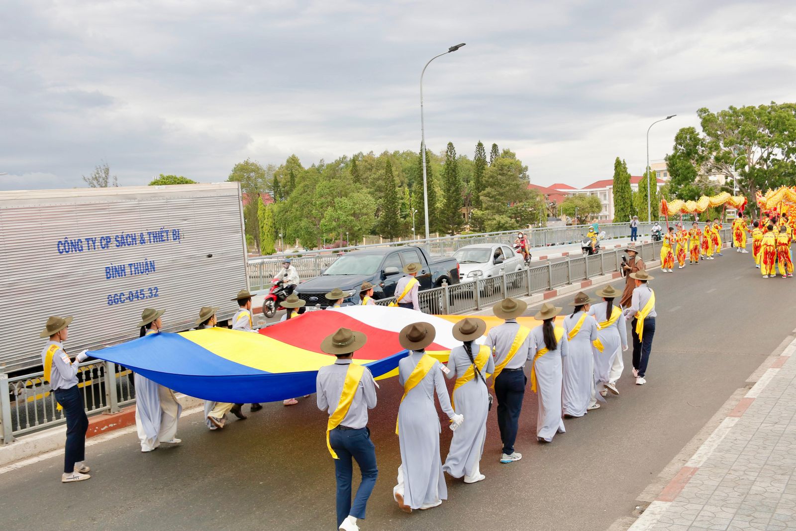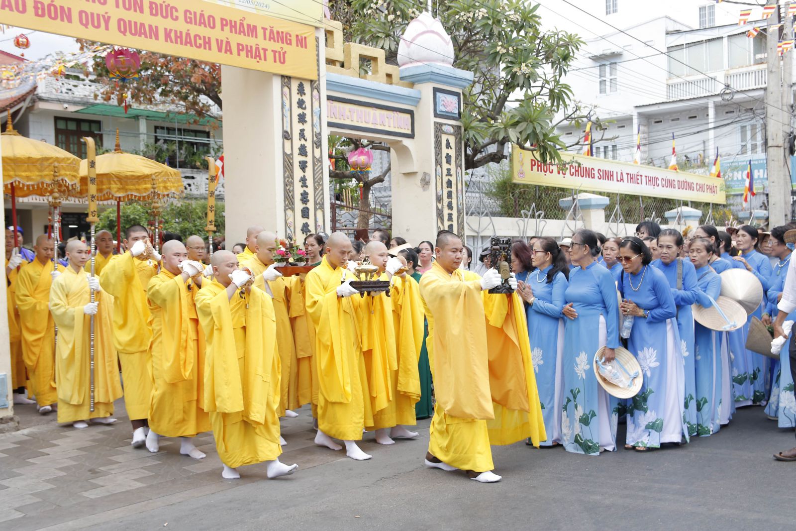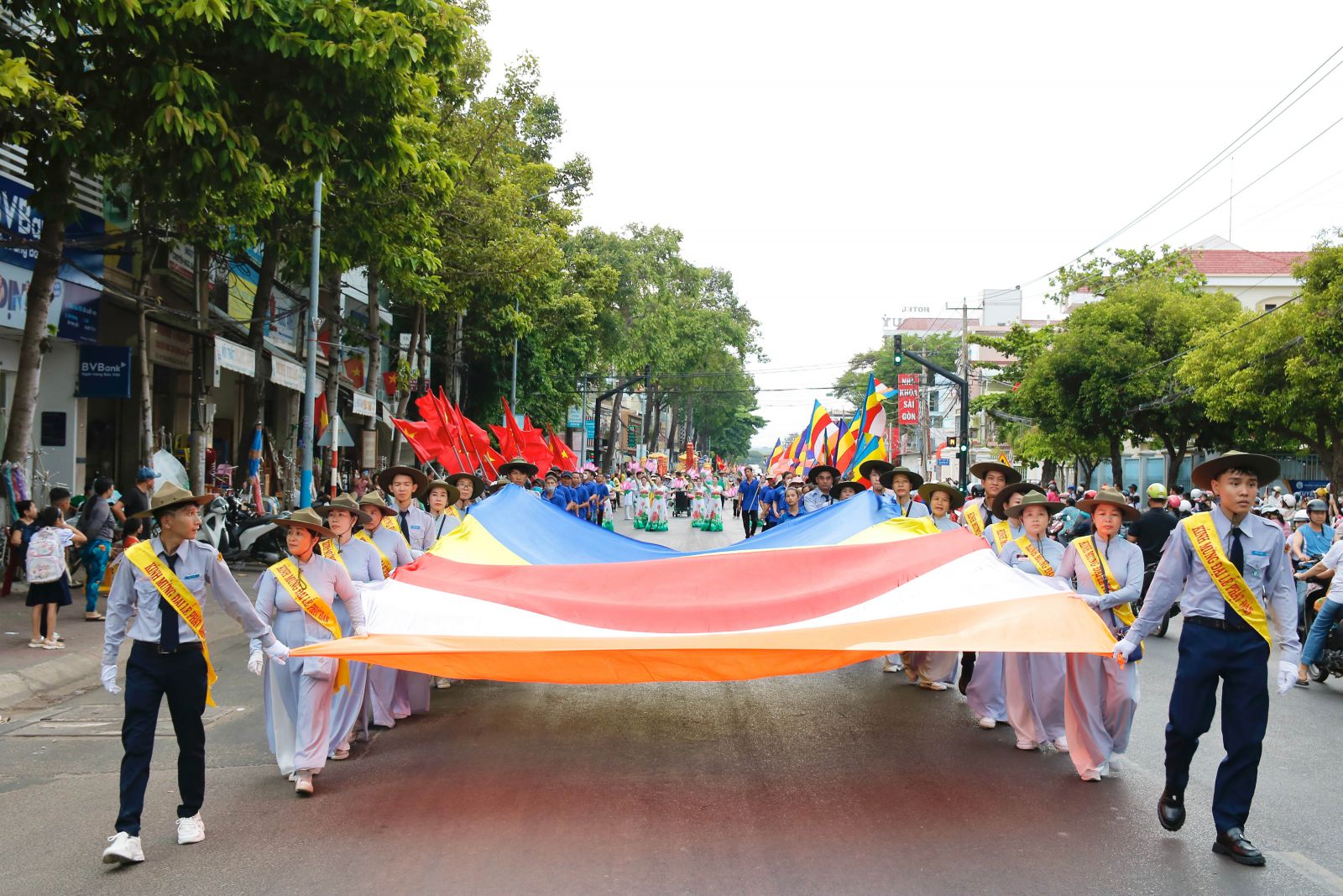 Đoàn cung rước Tôn tượng Đản sanh của Đức Từ phụ Bổn sư Thích Ca Mâu Ni Phật đã diễu hành một cách trang nghiêm qua các trục đường từ Chùa Tỉnh Hội Phật Ân – Văn phòng BTS Phật giáo tỉnh đến địa điểm thực hiện nghi thức thắp sáng 7 đoá hoa sen trên bờ sông Cà Ty (đoạn trước Trung tâm Hội nghị tỉnh Bình Thuận).