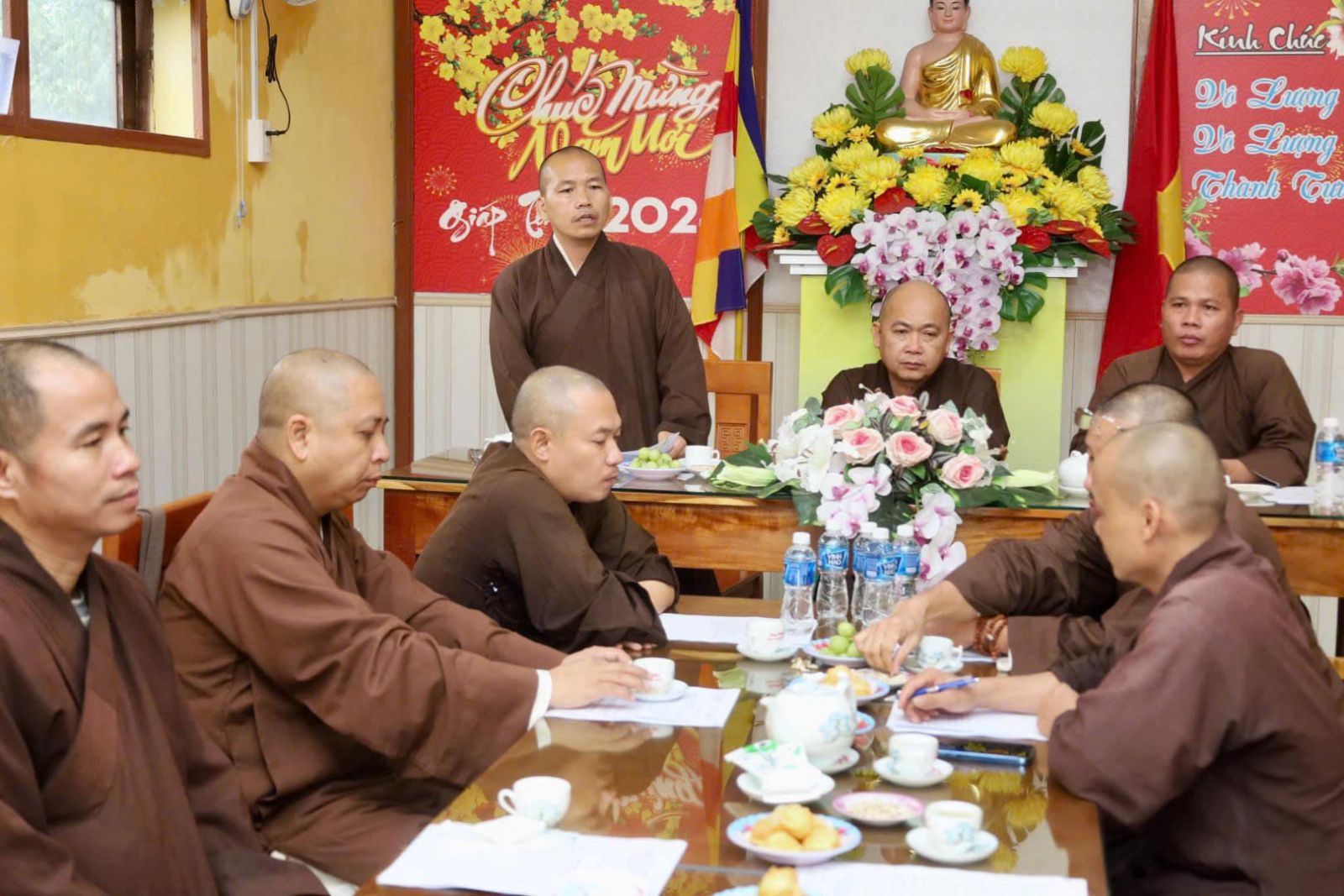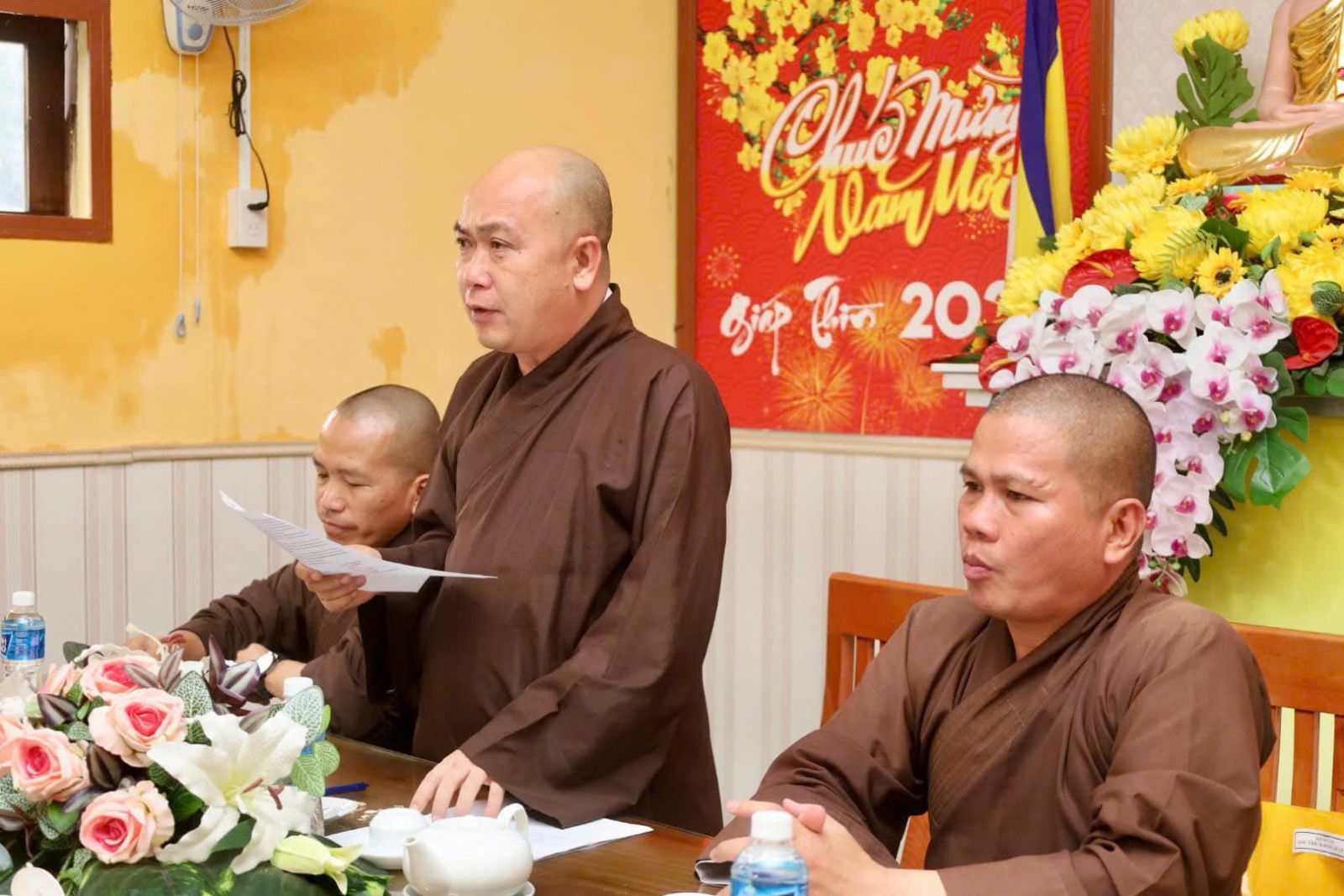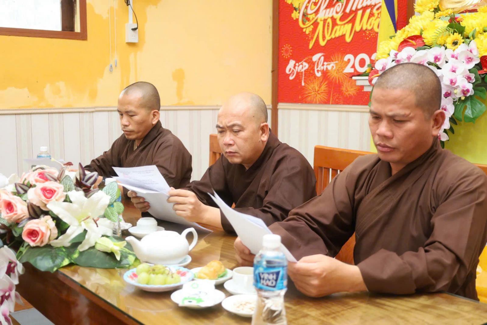 Phiên họp diễn ra dưới sự chủ tọa của Thượng tọa Thích Nguyên Sắc – Phó Trưởng Ban Trị sự GHPGVN Tỉnh; Trưởng Ban Trị sự PG Thành phố; Đại đức Thích Nguyên Tấn - Phó Ban Thường trực BTS PG Thành phố; Đại đức Thích Đồng Duyên - Phó Ban, cùng chư Tôn đức Tăng Ni thường trực BTS PG Thành phố đồng tham dự.