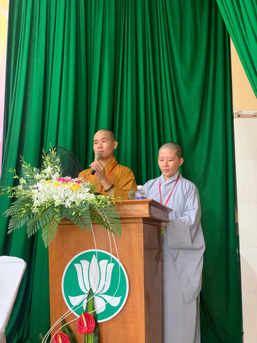 Phật tử Phương Uyên đã đại diện cho hơn 200 tu sinh dâng lời cảm tưởng tri ân đến chư tôn đức Tăng- Ni cũng như Ban tổ chức đã tạo cho các em môi trường tu học cũng như sân chơi bổ ích để các em hoàn thiện nhân cách mình hơn trước ngưỡng cửa cuộc đời.