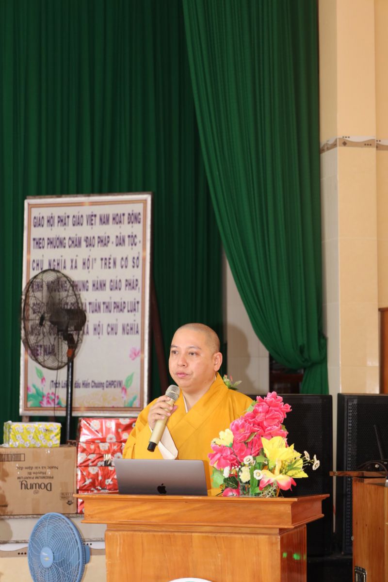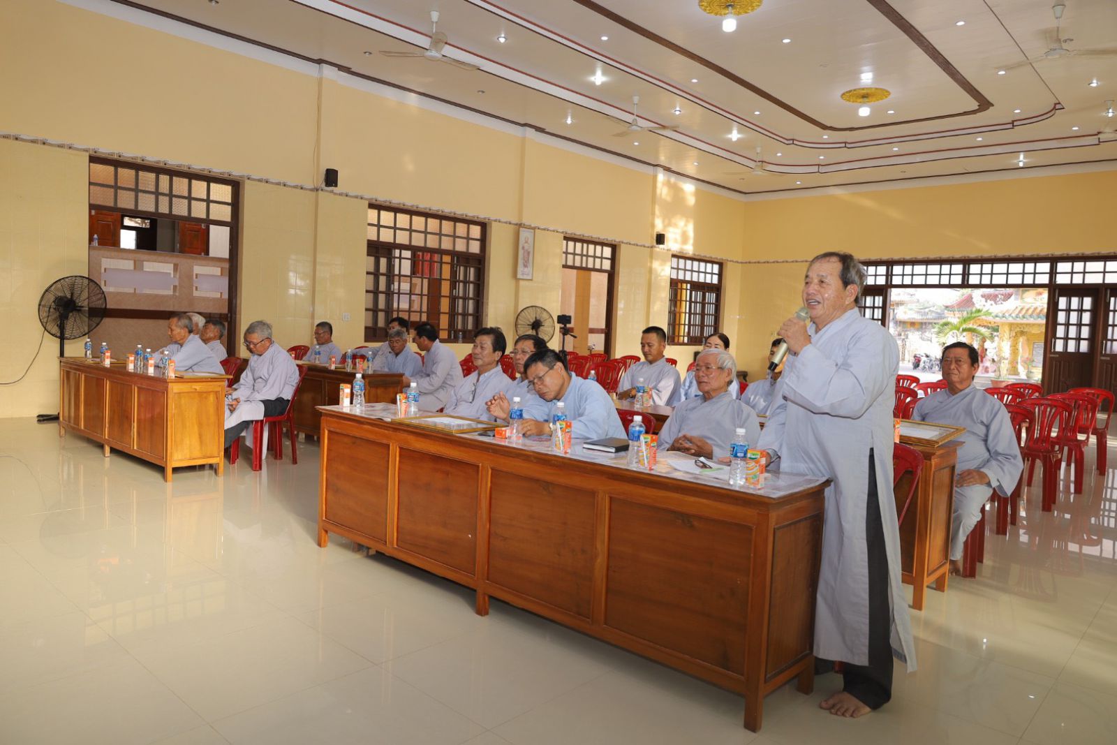 Tiếp theo đó, ĐĐ. Thích Quảng Pháp đã trình bày chi tiết về Quy chế Hoạt động của Ban Trị sự cấp Huyện/Thị/Thành phố trực thuộc tỉnh do Trung ương Giáo hội vừa thông qua. Bên cạnh đó, Đại đức cũng trình bày một số công tác quan trọng trong thời gian sắp tới như: Đại lễ Phật đản, An cư Kiết hạ, các công tác bổ nhiệm nhân sự lãnh đạo BTS PG Huyện trong giai đoạn nữa sau nhiệm kỳ; công tác tổ chức các chương trình sinh hoạt, hoằng pháp tại đảo,v.v.