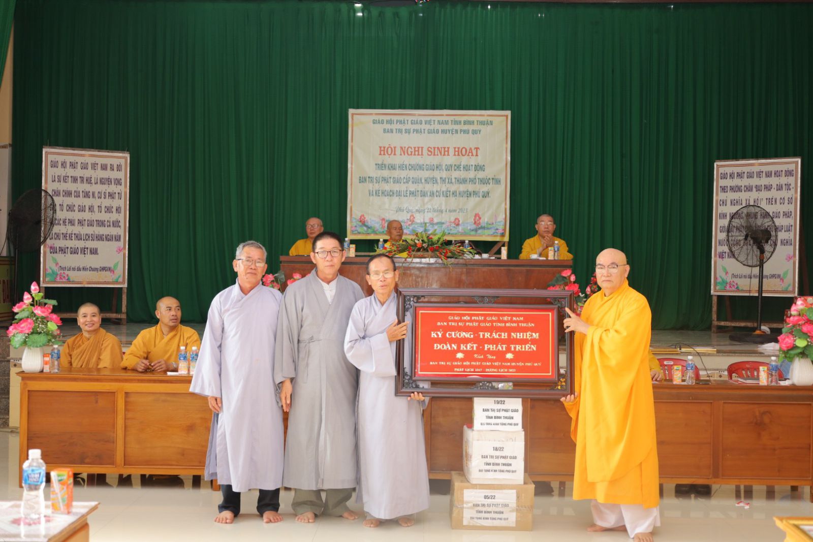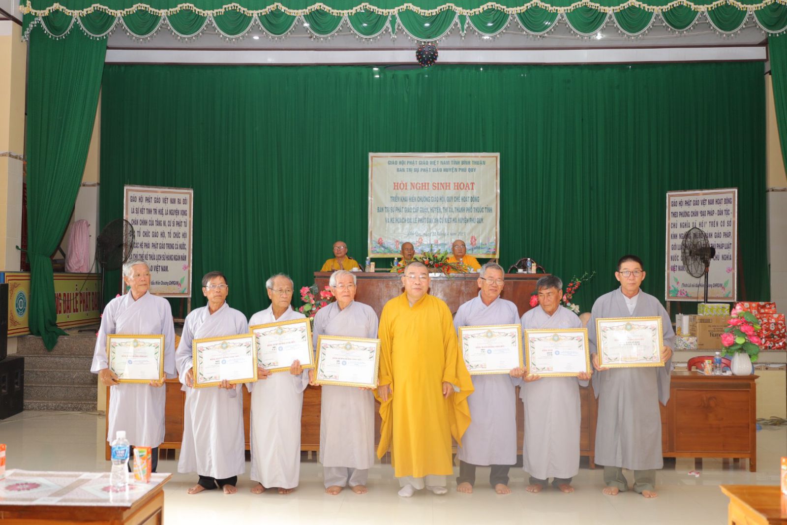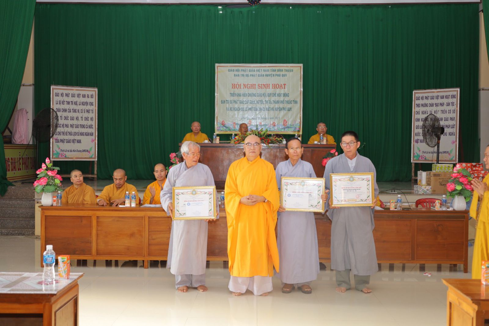 Nhân dịp này, lãnh đạo BTS Phật giáo huyện Phú Quý cũng như 7 Ban hộ tự tại các Chùa cũng đã vinh dự đón nhận Bằng tuyên dương công đức của Thường trực Ban Trị sự GHPGVN Tỉnh Bình Thuận.