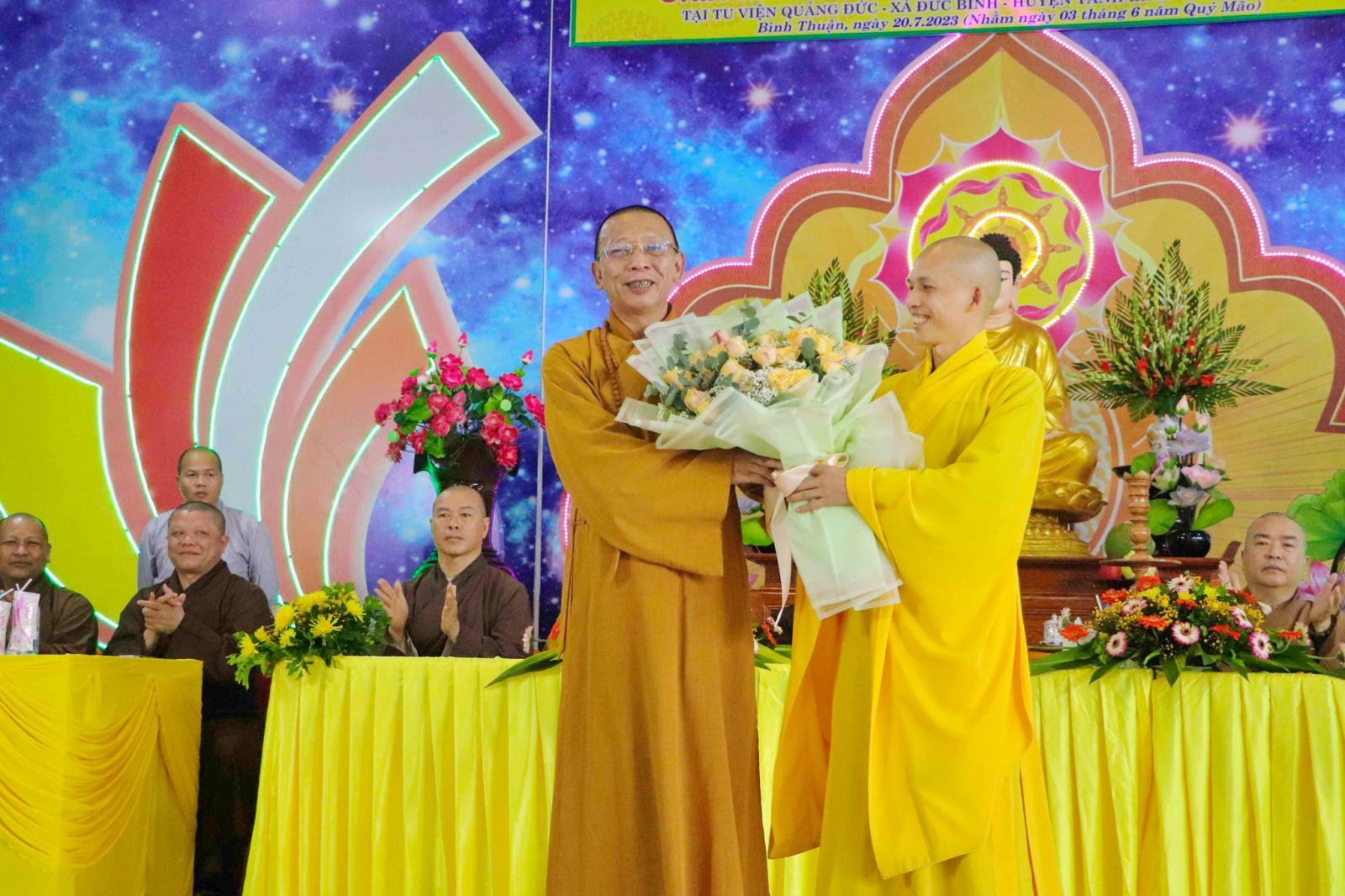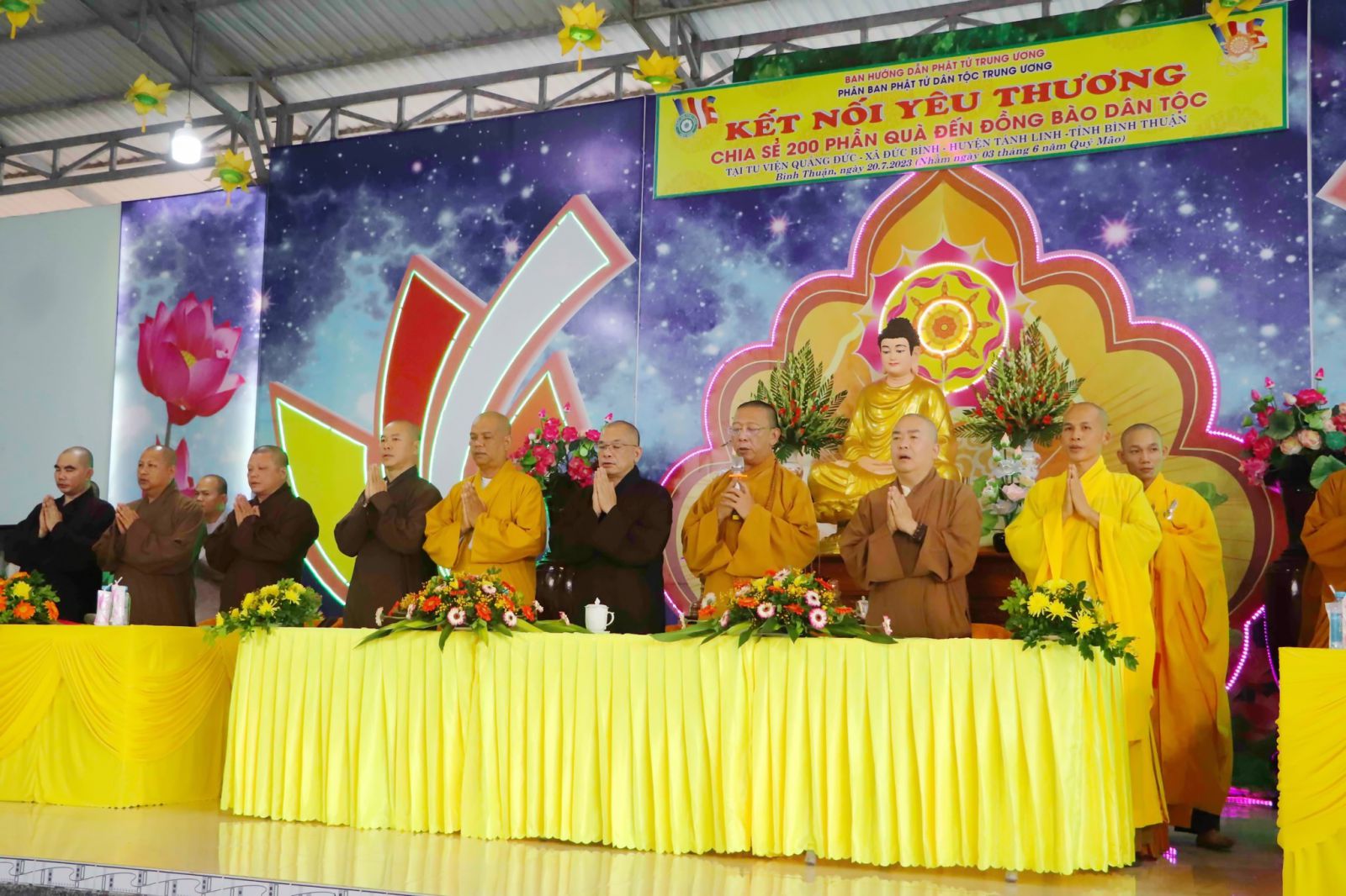 Đồng thời, thay mặt cho Chư Tôn Đức, ghi nhận và tán thán công đức của Đại Đức Thích Minh Trì, Ủy viên Phân Ban PTDT TƯ, Trưởng PB PTDT tỉnh Bình Thuận cùng quý Phật tử, quý Nhà Hảo Tâm đã đóng góp nên hơn 200 phần quà ý nghĩa hôm nay.
