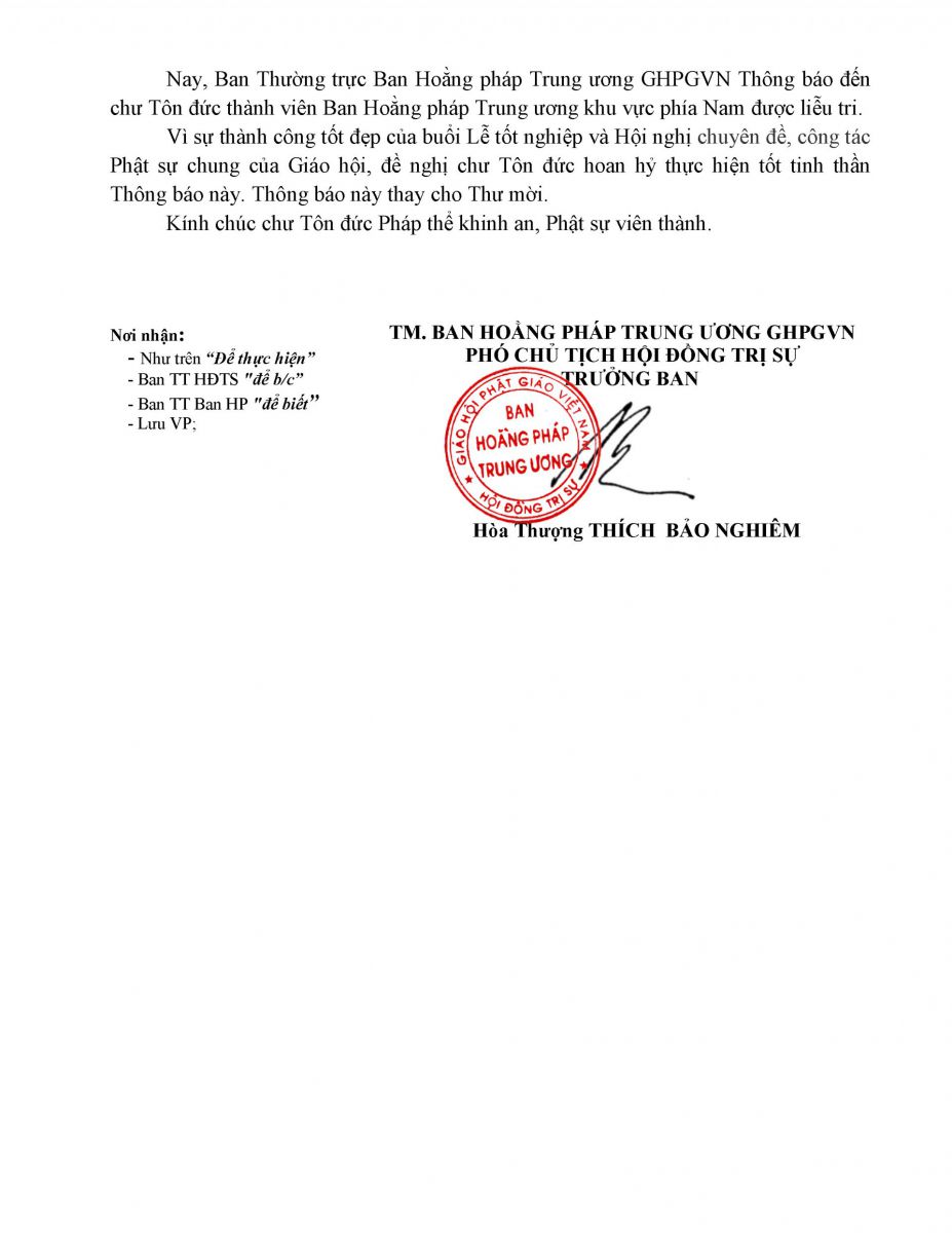 Nay, Ban Thường trực Ban Hoằng pháp Trung ương GHPGVN Thông báo đến chư Tôn đức thành viên Ban Hoằng pháp Trung ương khu vực phía Nam được liễu tri.