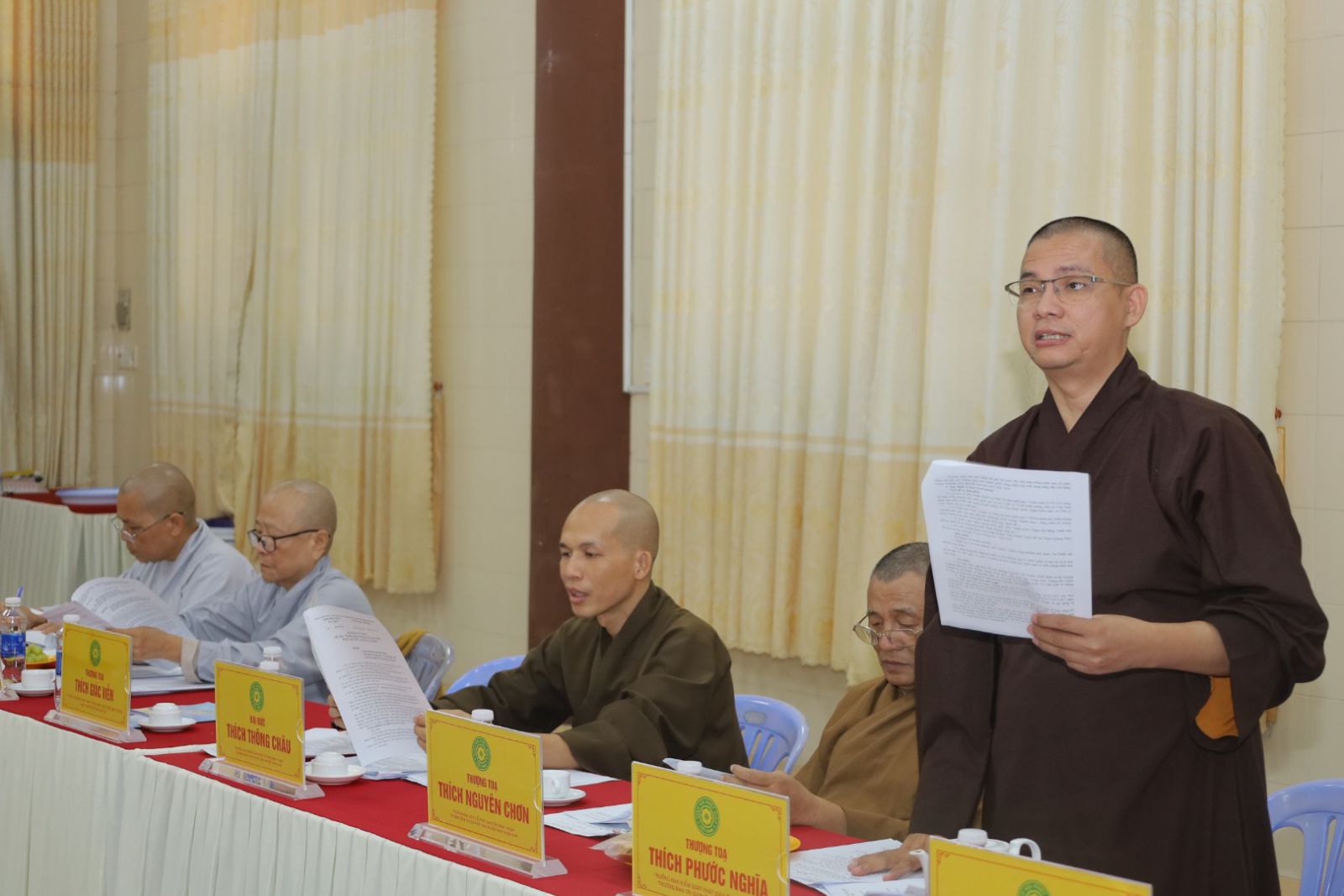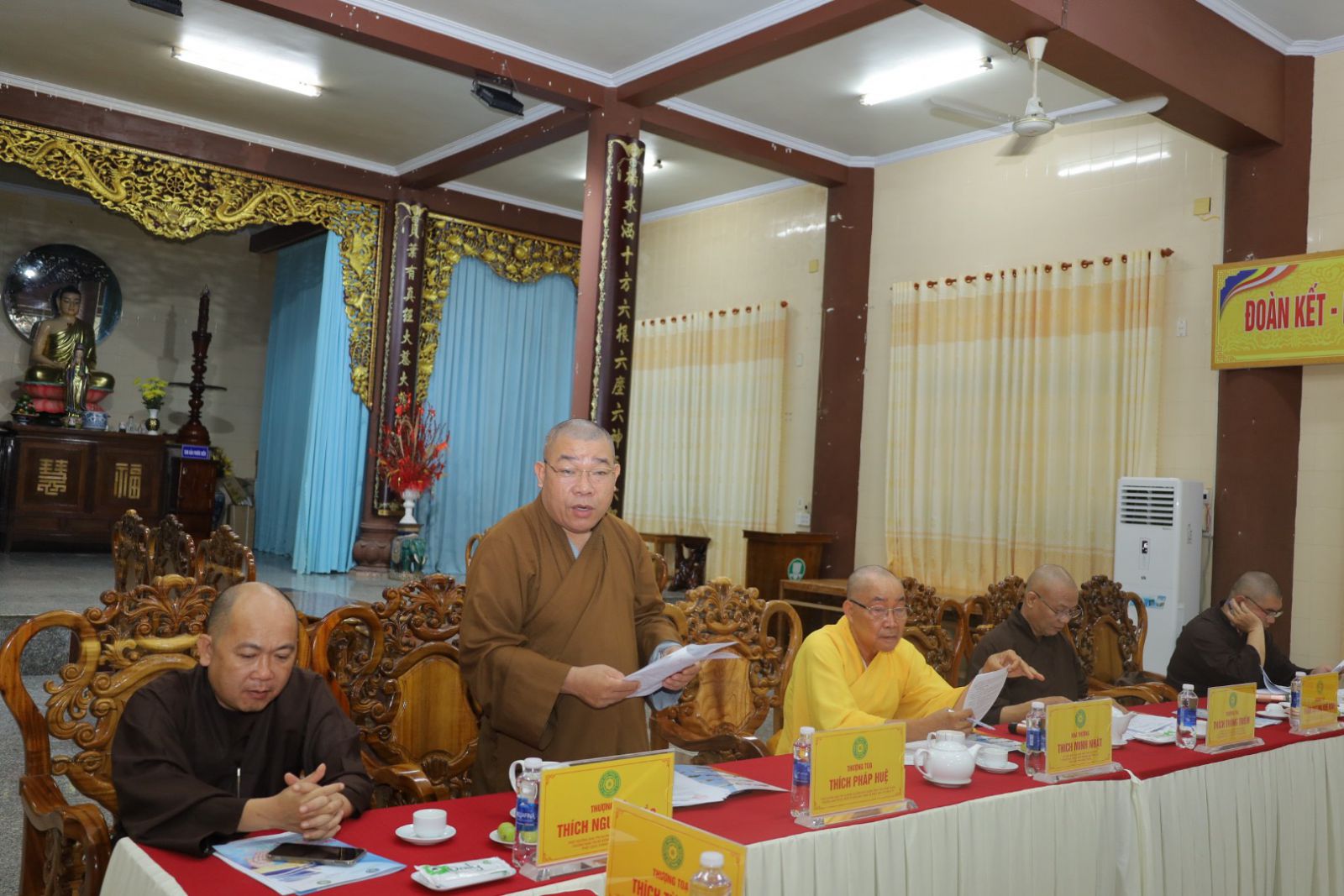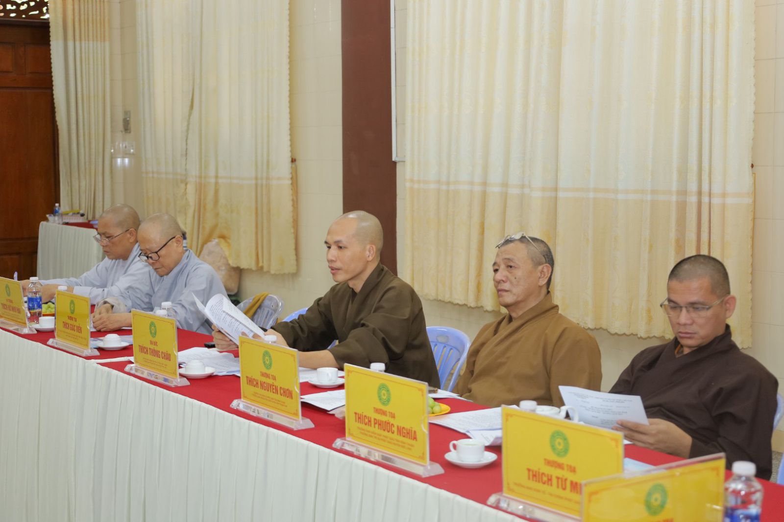 Quang lâm Chủ toạ cuộc họp có sự hiện diện của HT. Thích Minh Nhật – UV HĐTS, Trưởng Ban Trị sự kiêm Trưởng Ban Tăng sự Phật giáo Tỉnh, Trưởng Ban Tổ chức Đại lễ; TT. Thích Thông Triêm – UV HĐTS, Phó Trưởng Ban Thường trực kiêm Trưởng Ban GDPG Tỉnh; TT. Thích Pháp Huệ - Phó Trưởng Ban kiêm Trưởng Ban Hoằng pháp PG Tỉnh; TT. Thích Nguyên Sắc – Phó Trưởng Ban Trị sự; ĐĐ. Thích Nguyên Nguyệt – Phó Trưởng Ban kiêm Chánh Thư ký BTS PG Tỉnh, cùng Chư Tôn đức Tăng – Ni, quý cư sĩ Thường trực Ban Trị sự GHPGVN Tỉnh Bình Thuận đồng tham dự.
