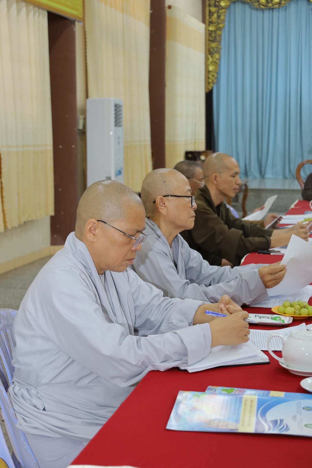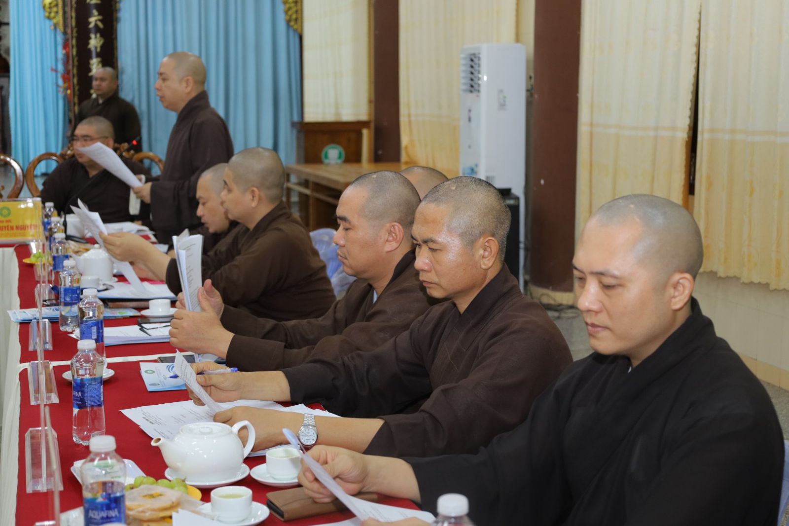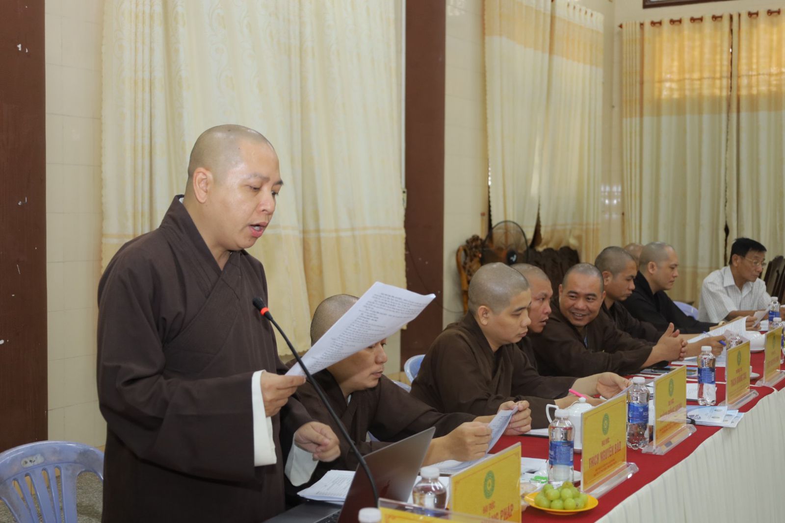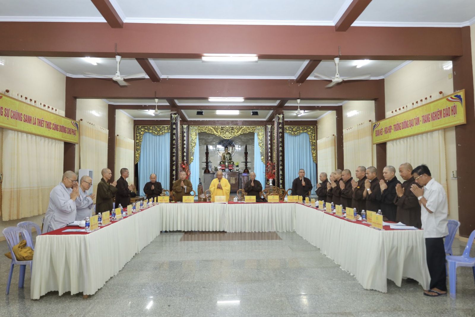 Quang lâm Chủ toạ cuộc họp có sự hiện diện của HT. Thích Minh Nhật – UV HĐTS, Trưởng Ban Trị sự kiêm Trưởng Ban Tăng sự Phật giáo Tỉnh, Trưởng Ban Tổ chức Đại lễ; TT. Thích Thông Triêm – UV HĐTS, Phó Trưởng Ban Thường trực kiêm Trưởng Ban GDPG Tỉnh; TT. Thích Pháp Huệ - Phó Trưởng Ban kiêm Trưởng Ban Hoằng pháp PG Tỉnh; TT. Thích Nguyên Sắc – Phó Trưởng Ban Trị sự; ĐĐ. Thích Nguyên Nguyệt – Phó Trưởng Ban kiêm Chánh Thư ký BTS PG Tỉnh, cùng Chư Tôn đức Tăng – Ni, quý cư sĩ Thường trực Ban Trị sự GHPGVN Tỉnh Bình Thuận đồng tham dự.
