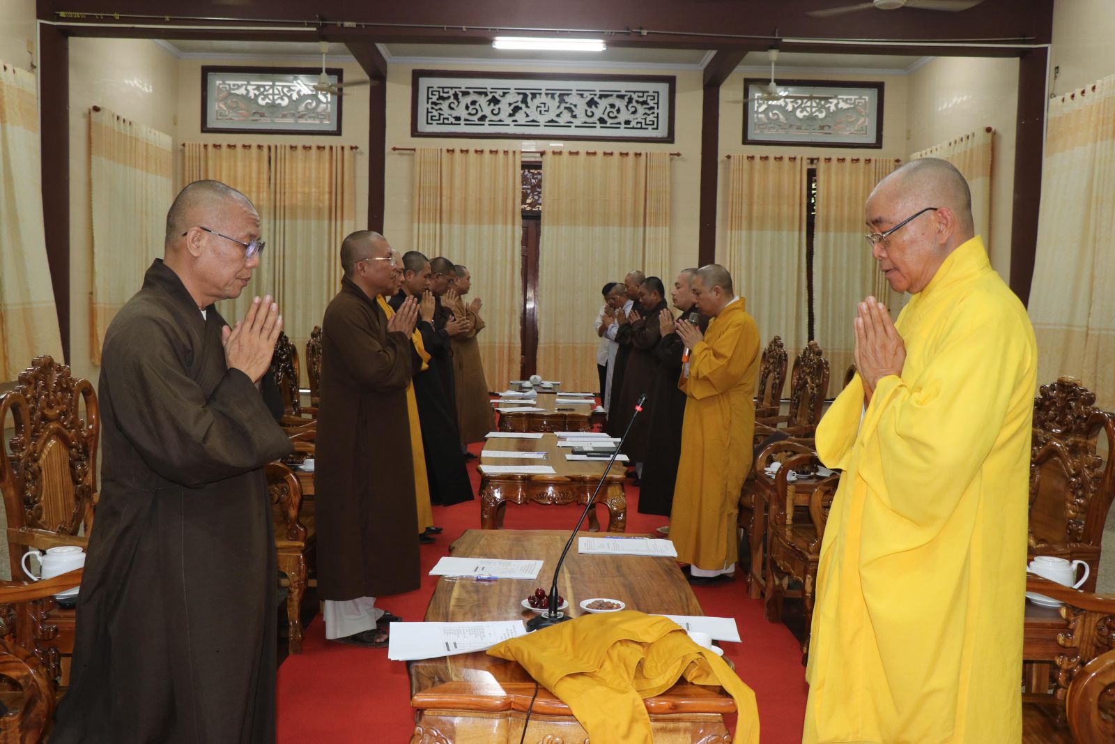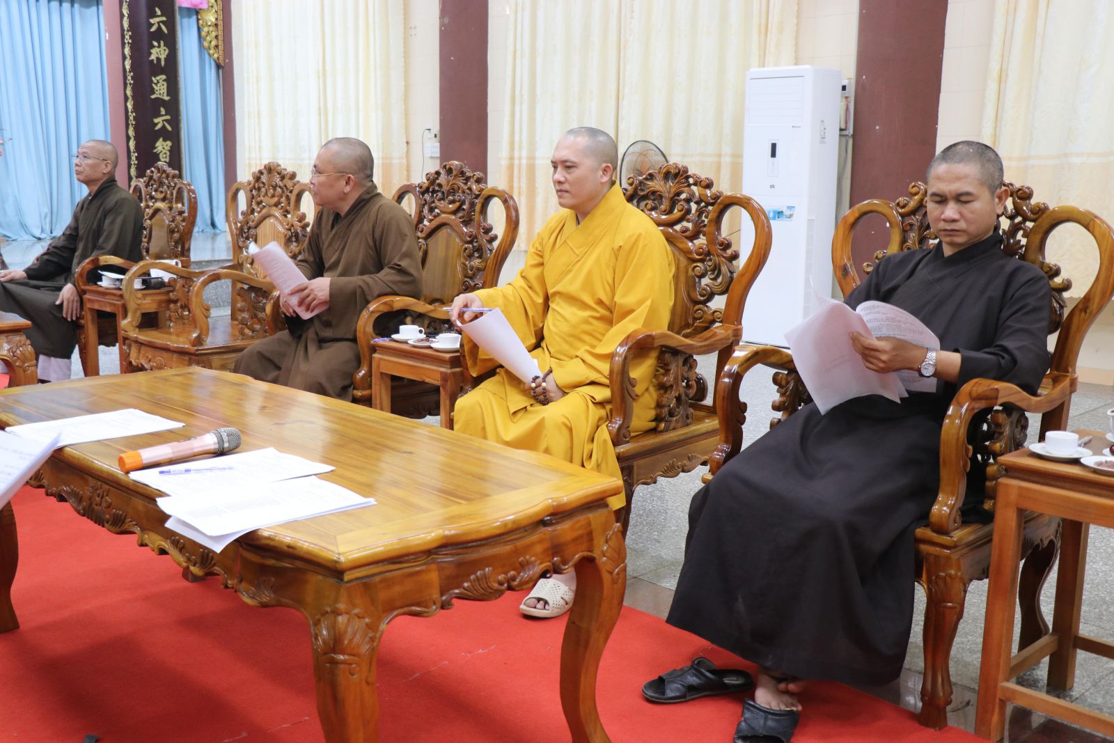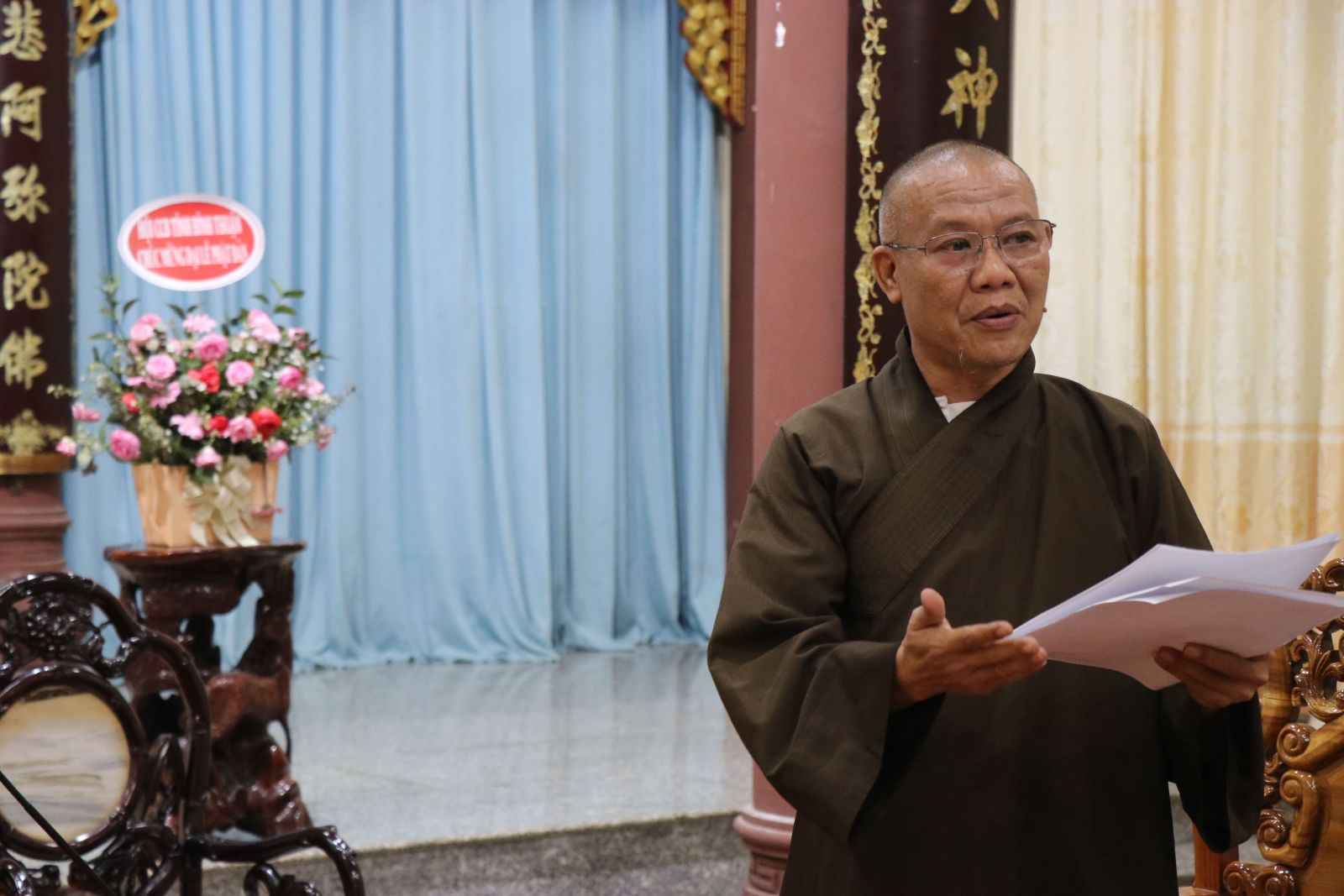 Quang lâm Chủ toạ cuộc họp có sự hiện diện của HT. Thích Minh Nhật – UV HĐTS, Trưởng Ban Trị sự kiêm Trưởng Ban Tăng sự Phật giáo Tỉnh, Trưởng Ban Tổ chức Đại lễ; TT. Thích Thông Triêm – UV HĐTS, Phó Trưởng Ban Thường trực kiêm Trưởng Ban GDPG Tỉnh; ĐĐ. Thích Quảng Pháp – Phó Thư ký kiêm Chánh Văn phòng BTS PG Tỉnh, cùng Chư Tôn đức Tăng – Ni, quý cư sĩ Thường trực Ban Trị sự GHPGVN Tỉnh Bình Thuận đồng tham dự.