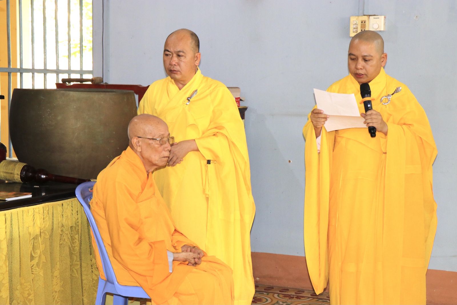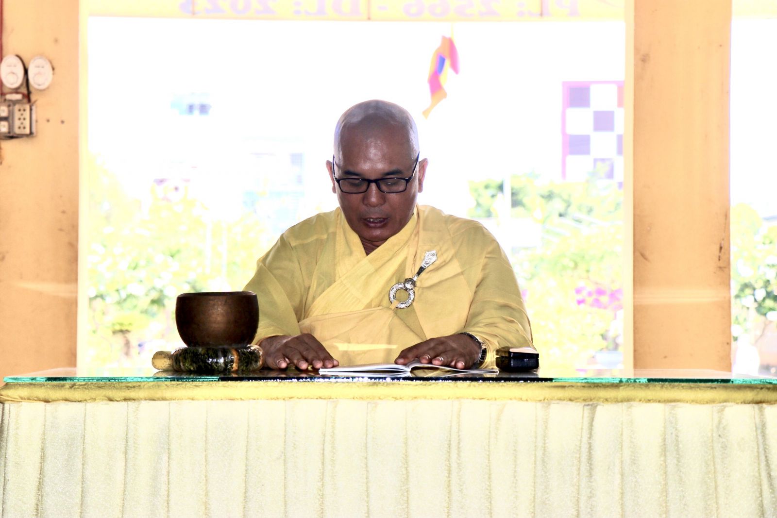 Trước khi tiến hành Bố tát tụng giới, Đại đức Thích Quảng Pháp – Phó Thư ký kiêm Chánh Văn phòng BTS Phật giáo Tỉnh trình bày công văn số 096 của Thường trực BTS Phật giáo Tỉnh Bình Thuận về việc nhắc nhở việc Tụng giới, Bố tát và sinh hoạt định kỳ tại các giới trường trong tỉnh.