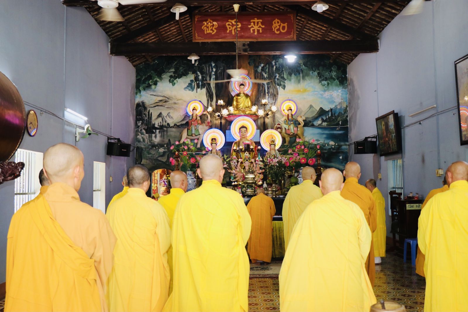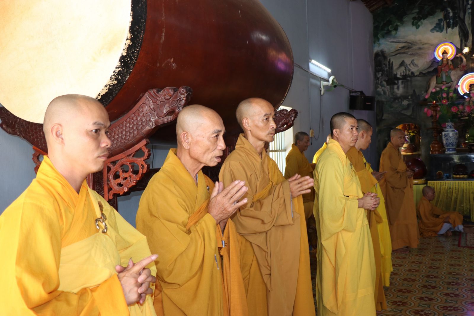 Lễ bố tát tụng giới có sự chứng minh của Trưởng lão HT. Thích Minh Trí – Thành viên HĐCM, Chứng minh Ban Trị sự GHPGVN Tỉnh Bình Thuận, Viện chủ Tòng Lâm Vạn Thiện; HT. Thích Thiện Hoa – Chứng minh BTS Phật giáo Huyện Hàm Thuận Nam; TT. Thích Nguyên Sắc - Phó Trưởng Ban Trị sự Phật giáo Tỉnh, Trưởng Ban Trị sự Phật giáo TP. Phan Thiết, cùng sự hiện diện của chư tôn đức Tăng tại 3 đơn vị TP. Phan Thiết, huyện Hàm Thuận Nam, huyện Hàm Thuận Bắc đồng tham dự.