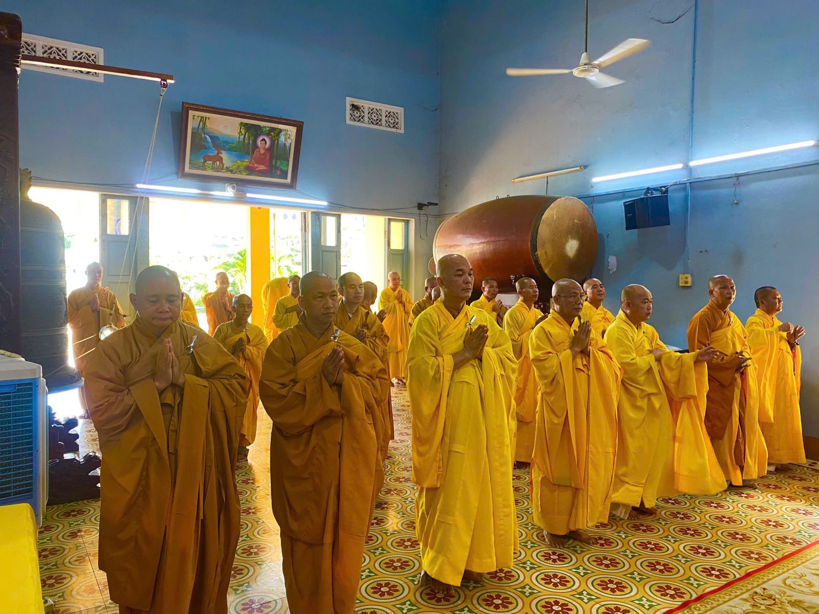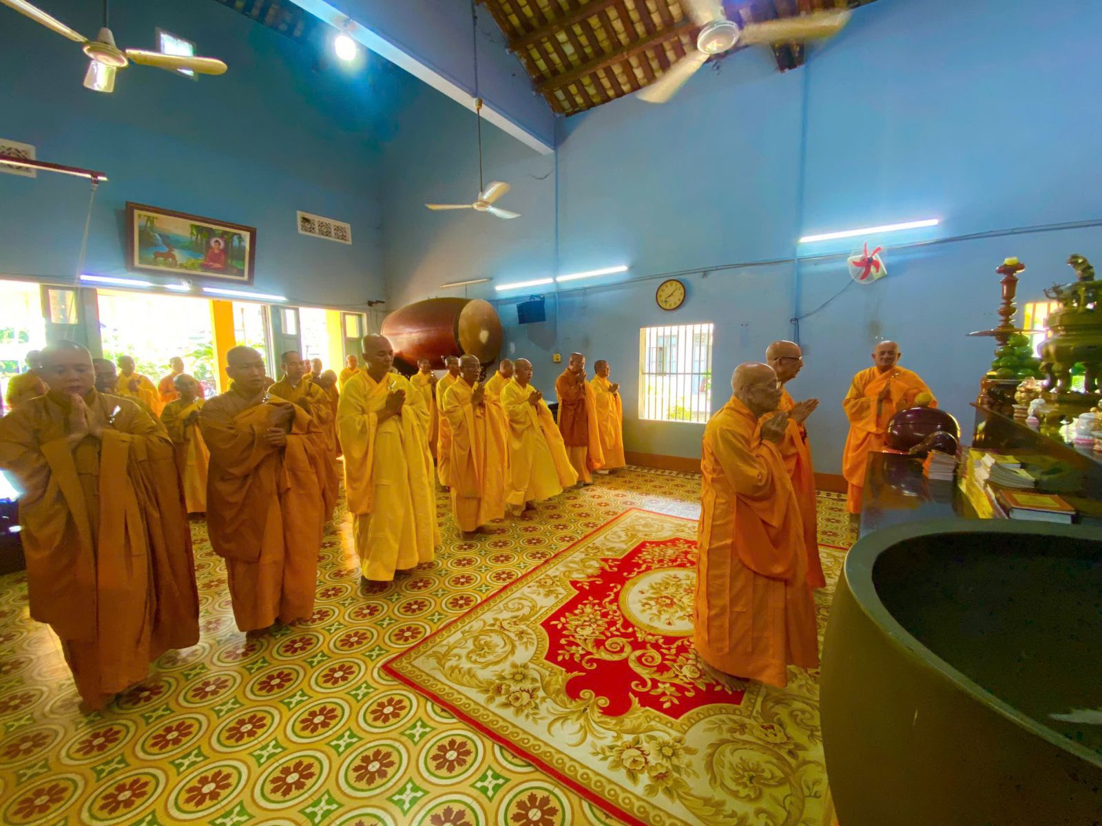 Buổi lễ bố tát, tụng giới diễn ra trang nghiêm thanh tịnh trong tinh thần hòa hợp, trưởng dưỡng đạo hạnh, đạo tâm theo nghi thức truyền thống.