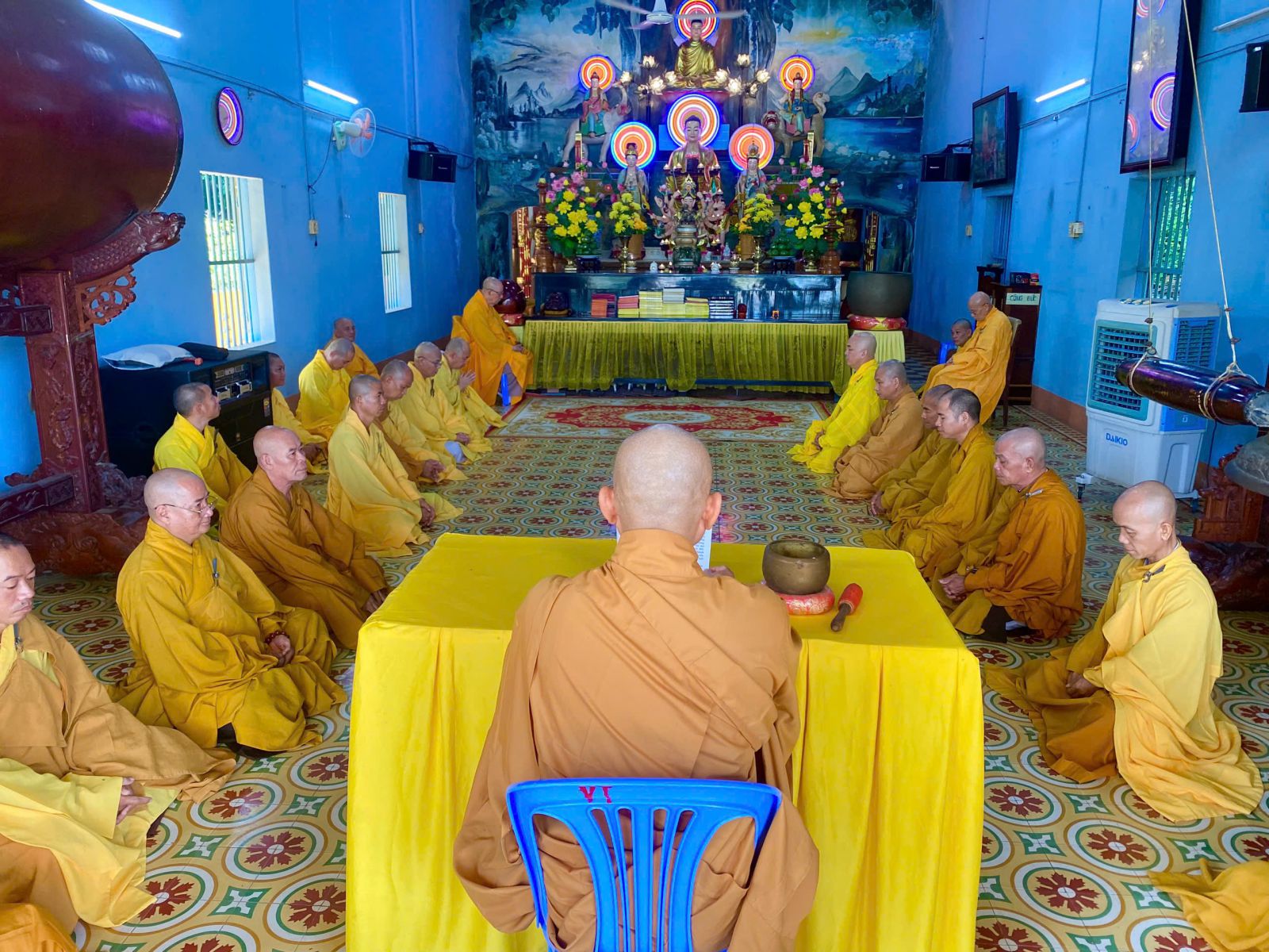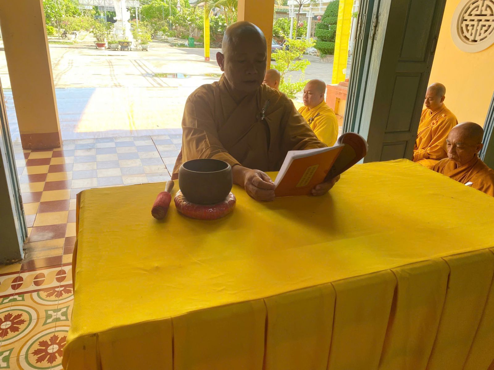 Được sự phân công luân phiên, TT. Thích Huệ Định - Uỷ viên BTS PG tỉnh, Trụ trì chùa Thiện Hòa (HTB) đã đại diện Chư Tăng Phật giáo huyện Hàm Thuận Bắc trùng tụng Tỳ kheo giới kinh trước hành giả an cư.