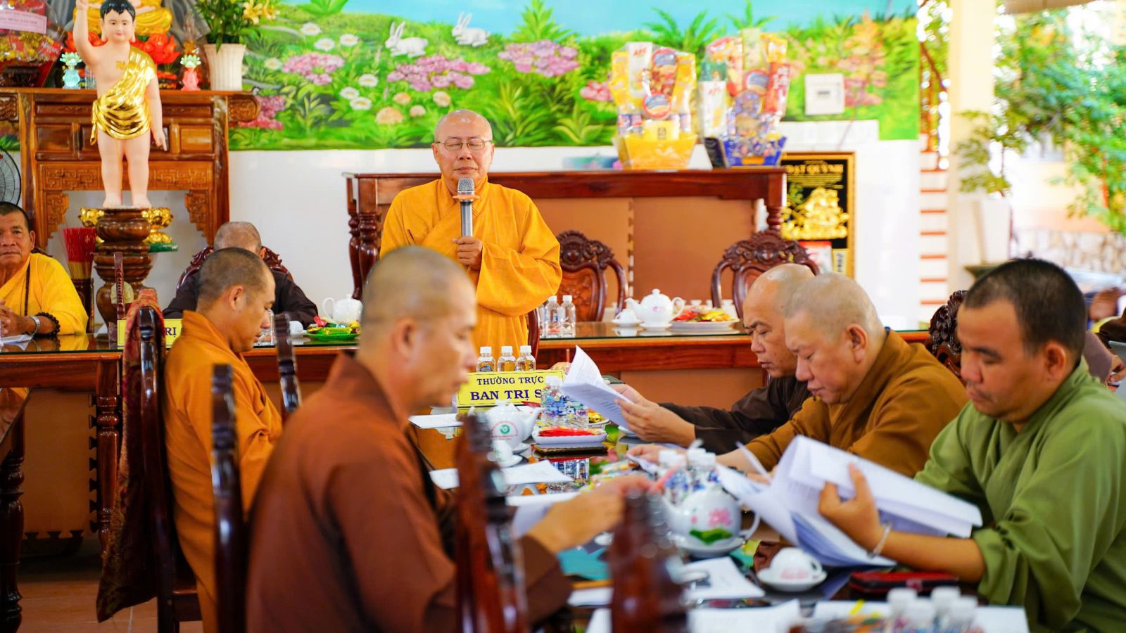 ĐĐ. Thích Nguyên Đạo trình bày kế hoạch tổ chức An cư Kiết hạ