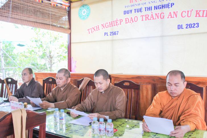 Cũng trong phiên họp ĐĐ. Thích Nguyên Đạo - Chánh Văn phòng Ban trị sự PG huyện trình bày về chương trình khai khoá An cư Kiết hạ như sau: Lễ tác pháp, khai khóa An cư Kiết hạ PL.2569 cho Tăng Ni Phật giáo huyện nhà sẽ diễn ra vào ngày 16/5 năm Ất Tỵ. Trong mùa An cư Kiết hạ, chư Tôn đức Tăng Ni Phật giáo huyện tập trung Bố-tát, thính giới trùng tụng giới bổn vào các ngày 29,30 và 15 âm lịch hàng tháng.