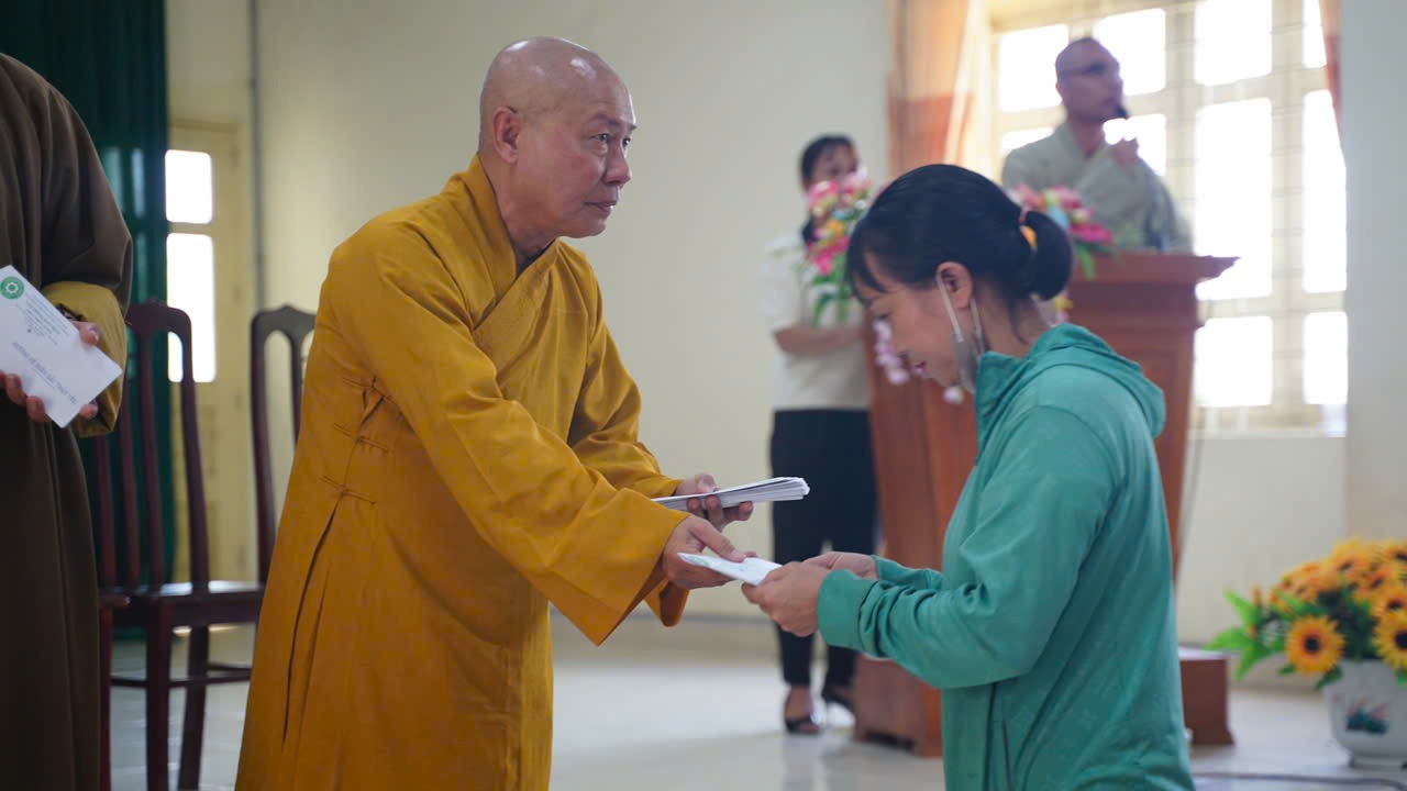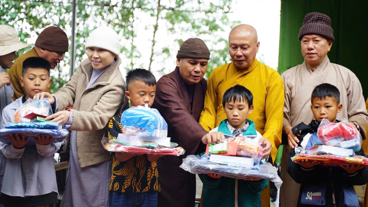 Đoàn do Hòa thượng Thích Trí Huệ, Phó Trưởng Ban Trị sự GHPGVN tỉnh Bình Thuận, Trưởng Ban Trị sự GHPGVN huyện Tuy Phong làm Trưởng đoàn; Thượng tọa Thích Từ Minh, Phó trưởng Ban Trị sự GHPGVN huyện Tuy Phong, Phó đoàn; ĐĐ. Thích Tâm Thông, Phó Trưởng Ban Trị sự Phật giáo huyện; Sư cô Thích Nữ Mẫn Liên, Trưởng Ban Từ thiện – Xã hội và Chư Tôn thiền đức Tăng Ni thường trực Ban Trị sự Phật Giáo huyện.