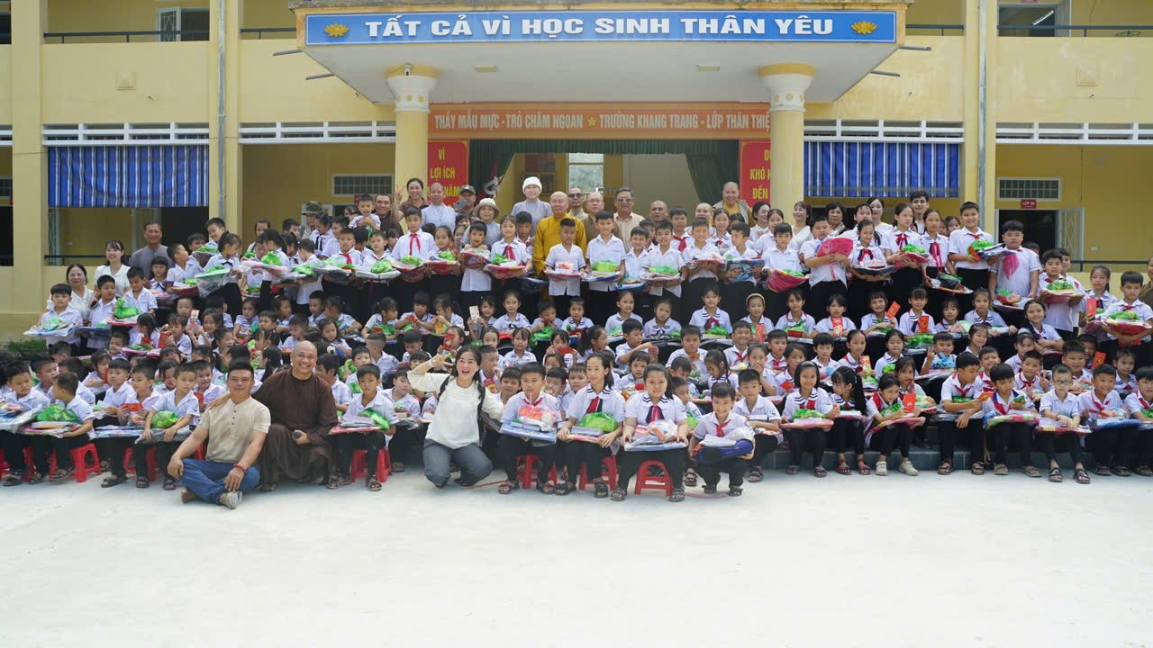 Bên cạnh đó, đoàn cũng đã trao 700 phần quà cho học sinh tại 3 tỉnh gồm: sữa, tập vở, bút, balô, quần áo thể thao học sinh mới.