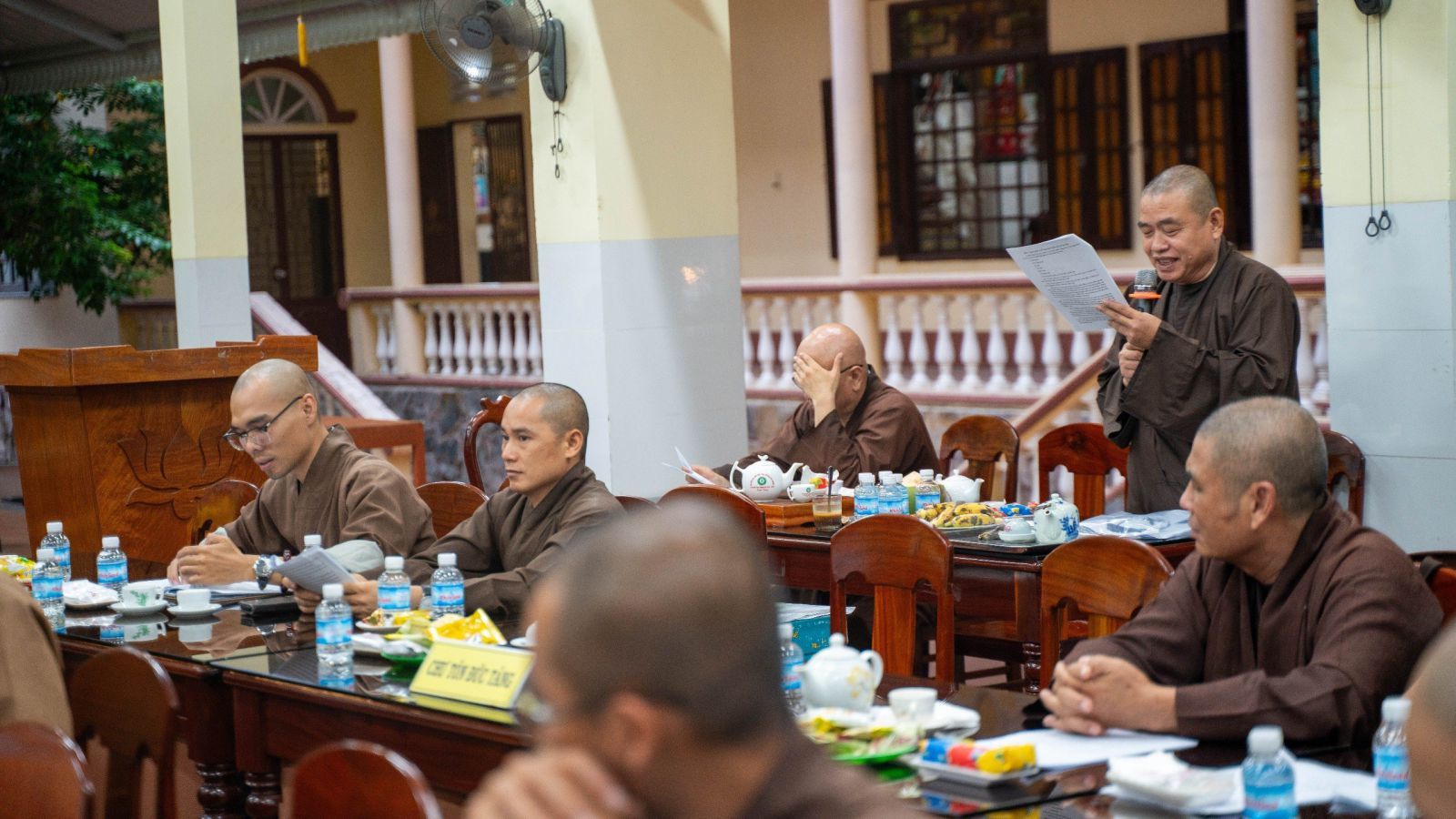 Chư Tôn đức tham dự cuộc họp đã lần lượt trình bày những ý kiến, vướng mắc trong việc thành lập các Ban Quản trị cơ sở tự viện.