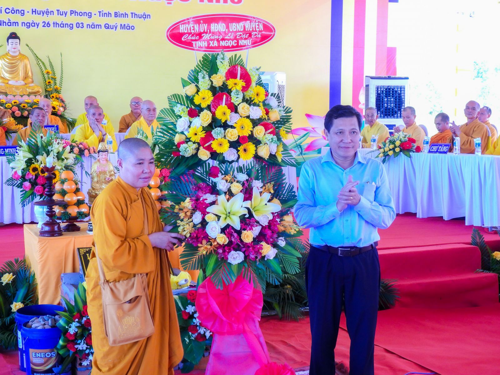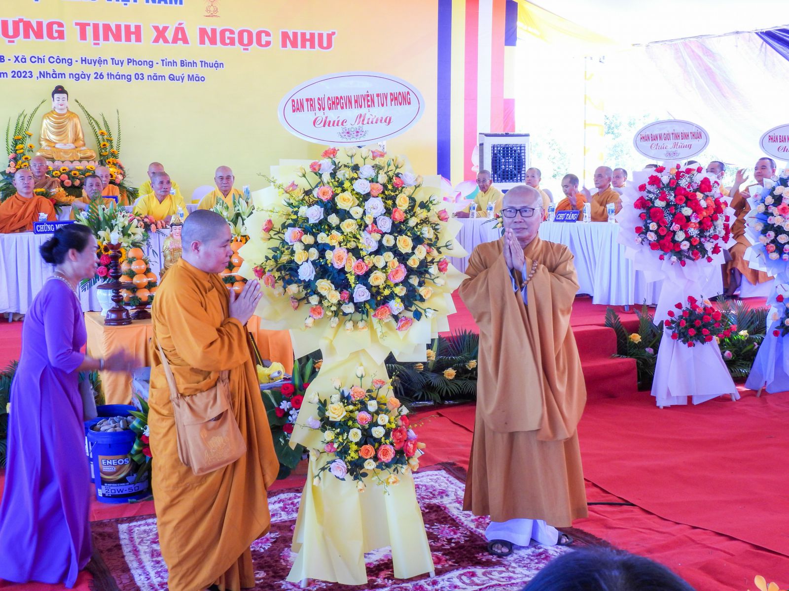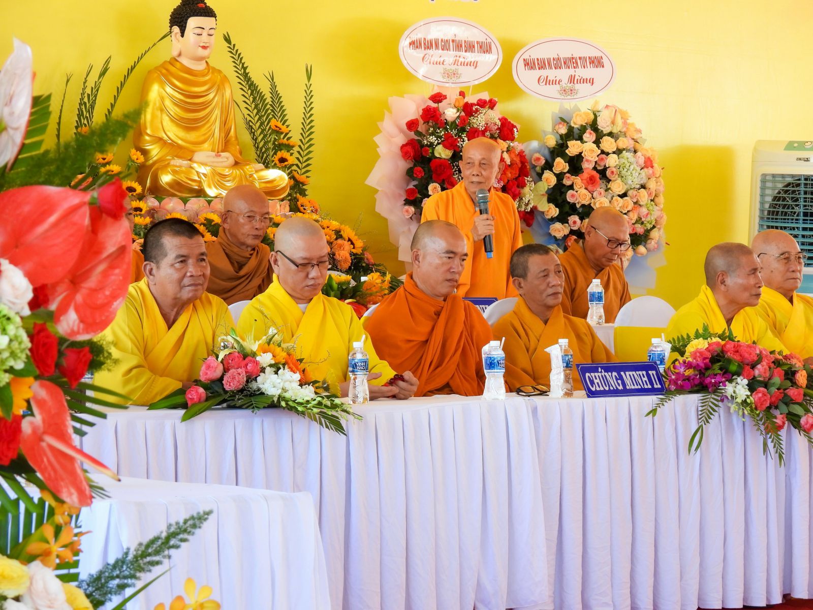 Chứng minh và tham dự buổi lễ có Hòa thượng Thích Minh Trí, Hoà thượng Thích Giác Sơn – đồng Thành viên Hội đồng Chứng minh, Giáo phẩm chứng minh BTS Phật giáo Tỉnh Bình Thuận; Hoà thượng Thích Trí Huệ - Phó Trưởng Ban Trị sự GHPGVN Tỉnh Binh Thuận, Trưởng Ban Trị sự Phật giáo Huyện Tuy Phong; Hoà thượng Thích Phước Túc – Giáo phẩm Chứng minh BTS Phật giáo Huyện Tuy Phong; Hoà thượng Thích Giác Khang – Giáo phẩm Giáo đoàn 2 – Hệ phái Khât sĩ; Thượng toạ Thích Từ Minh – Trưởng Ban KT-TC Phật giáo Tỉnh; Thượng toạ Thích Nguyên Chơn – Trưởng Ban Nghi lễ Phật giáo Tỉnh; Thượng toạ Thích Giác Viễn – UVTT BTS Phật giáo Tỉnh đặc trách hệ phái Khất sĩ; Ni trưởng Thích Nữ Như Hải – Trưởng Phân Ban Ni giới Phật giáo Tỉnh; Ni trưởng Thích Nữ Chiêu Liên – Giáo phẩm Thường trực Ni giới hệ phái Khất sĩ; cùng chư tôn đức Ban Trị sự tỉnh, huyện Tuy Phong, hệ phái Khất sĩ, Tăng Ni các tự viện, Phật tử đồng tham dự.