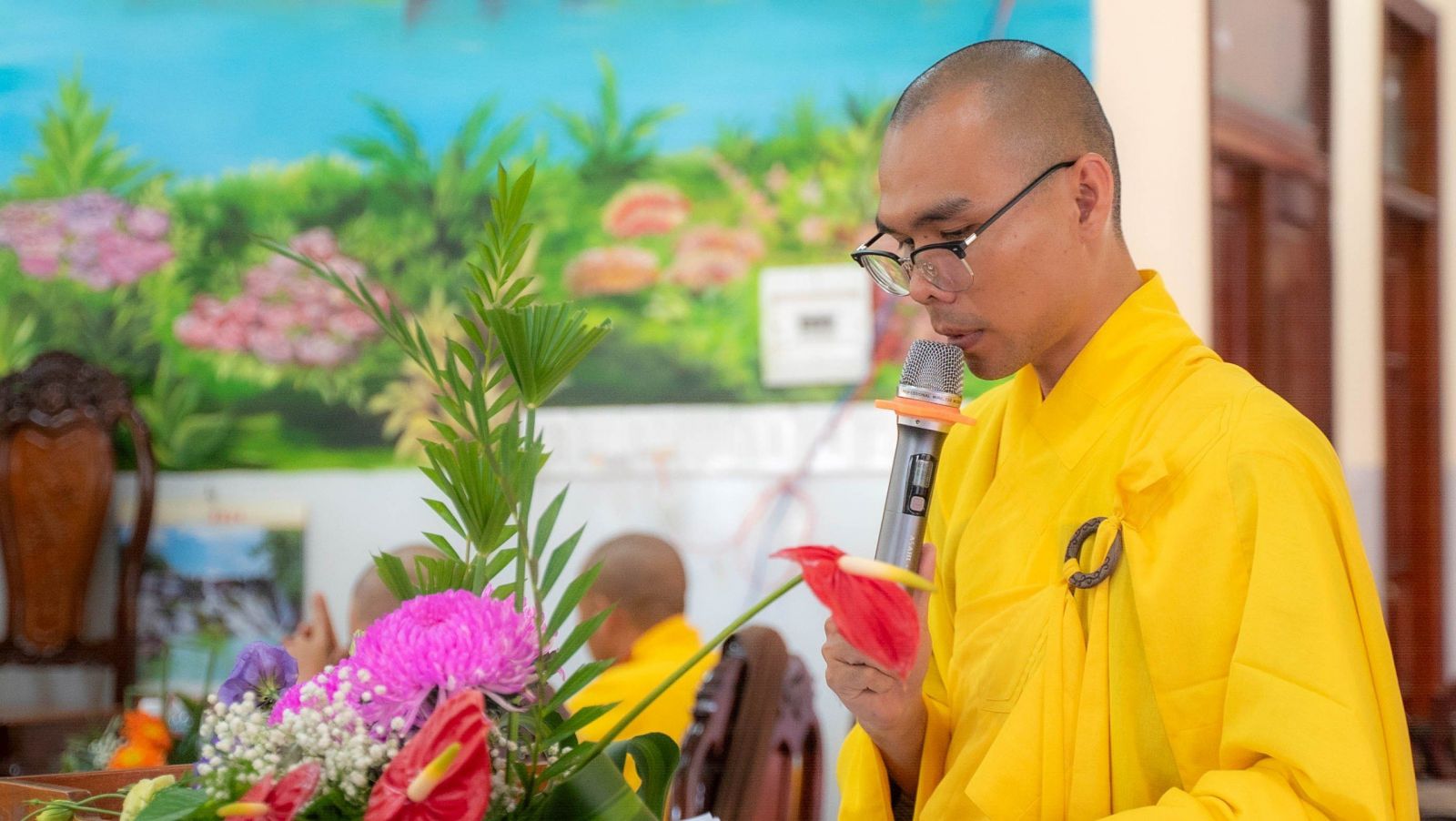 Trước khi kết thúc, Đại đức Thích Tâm Thông - Phó Ban Trị sự kiêm Trưởng Ban Hướng dẫn Phật tử GHPGVN huyện Tuy Phong đã phát biểu cảm tạ, tri ân chư tôn đức và quý quan khách đã tham dự lễ khai hạ do BTS Phật giáo huyện tổ chức.