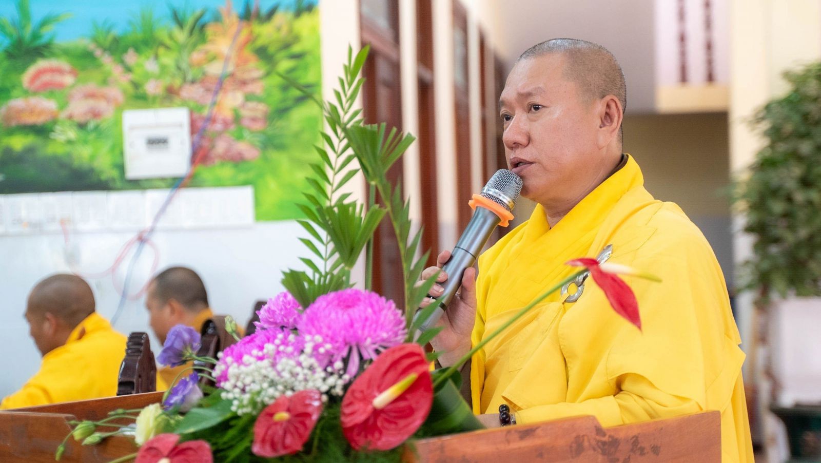 Thay mặt Ban tổ chức khóa An cư Kiết hạ Phật lịch 2568 , HT. Thích Trí Huệ đã phát biểu tuyên bố khai giảng khóa An cư kiết hạ Phật lịch 2568 - Dương lịch 2024 do Ban Trị sự GHPGVN huyện Tuy Phong tổ chức.