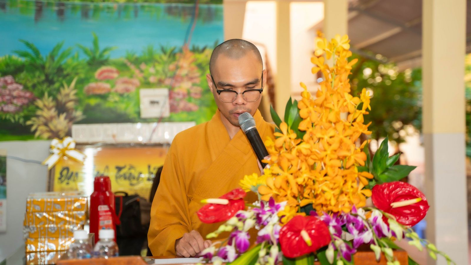 Đại diện cho hàng Phật tử đã dâng lời cảm niệm mùa Vu lan hoài tưởng về công cha nghĩa mẹ và tác bạch dâng cúng pháp y, tứ sự mừng khánh tuế chư Tôn đức tăng thêm hạ lạp sau ba tháng an cư kiết hạ.